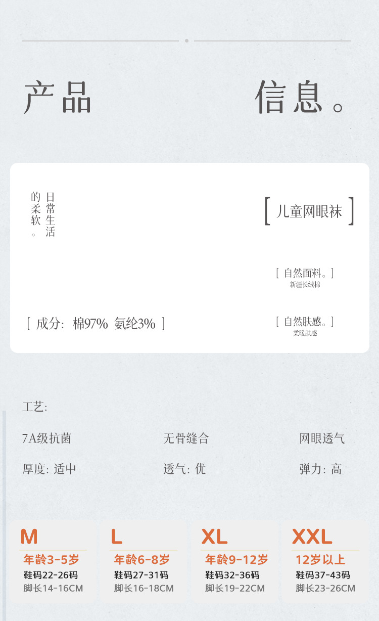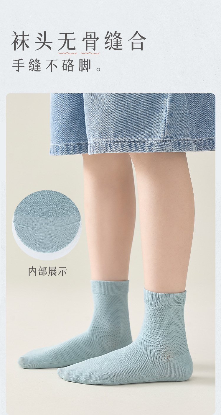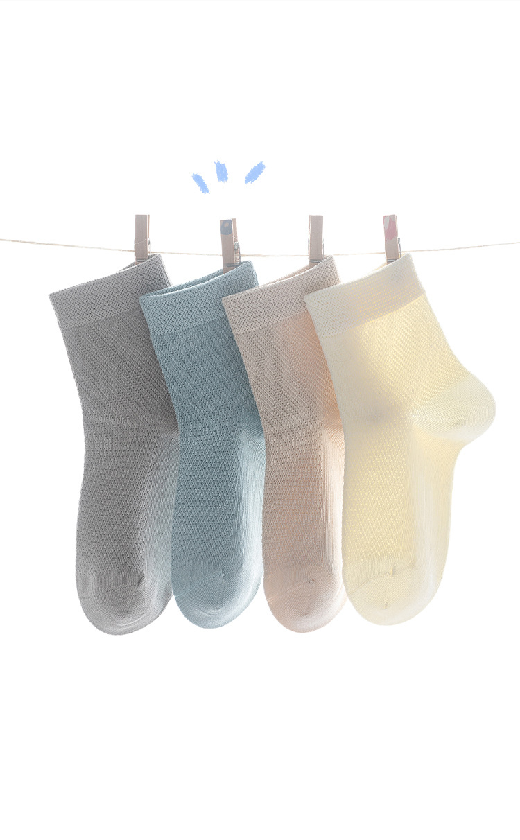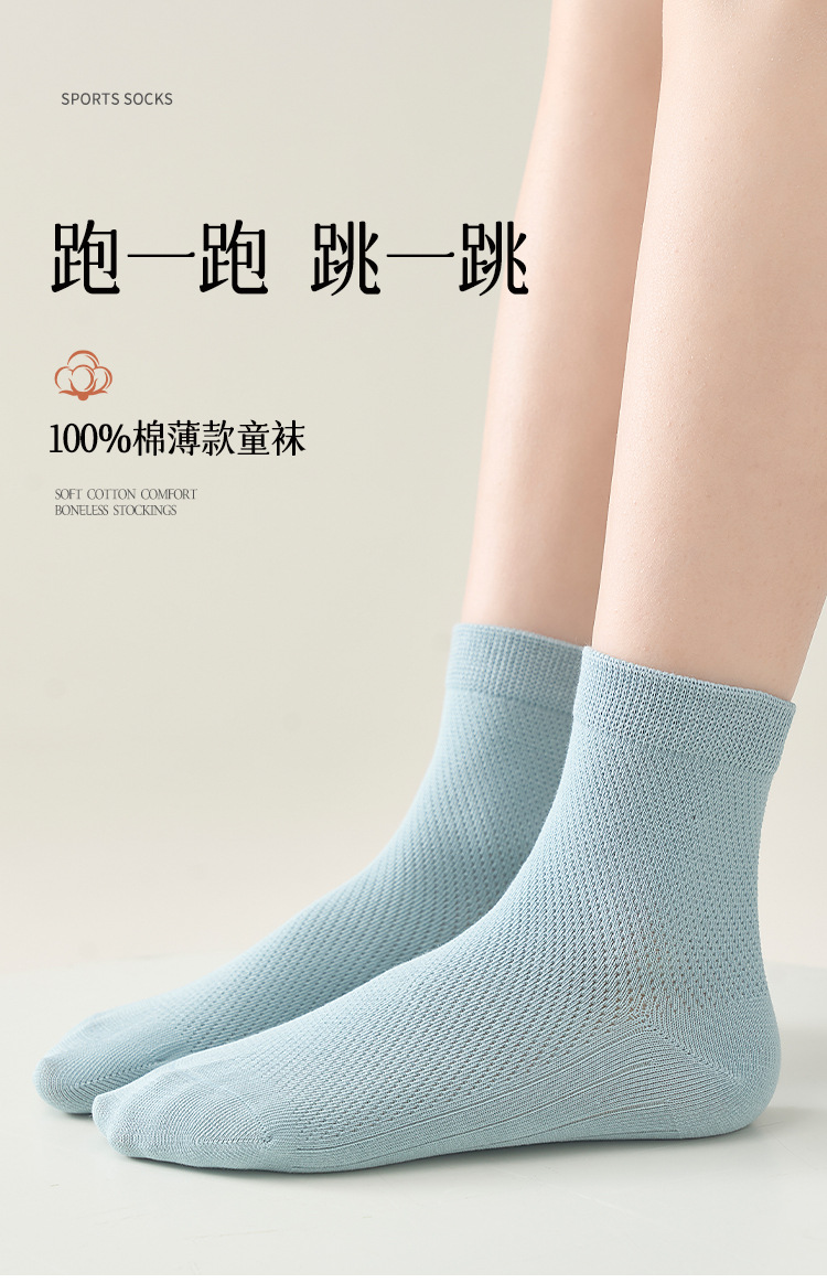 【挑战7天不臭脚!4对精选袜!】10A抗菌 纯棉儿童袜子 全棉夏季薄款男童网眼中筒袜 男孩女孩中大童学生袜子