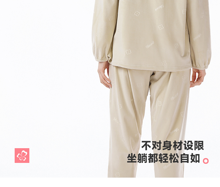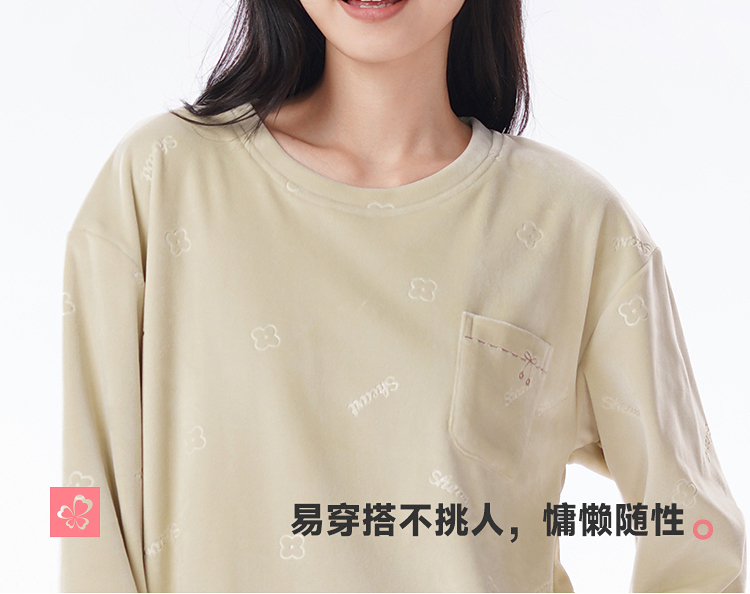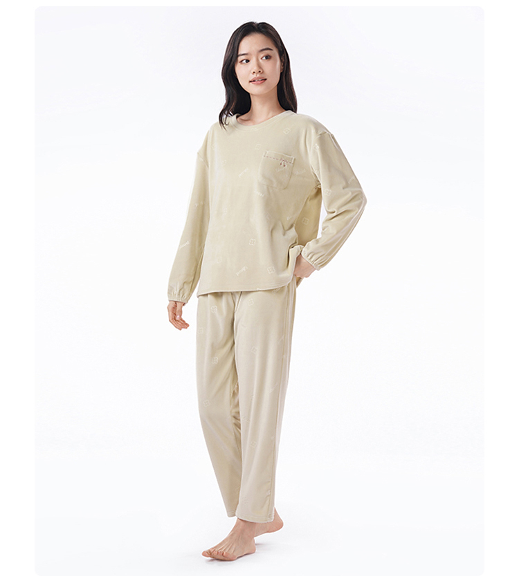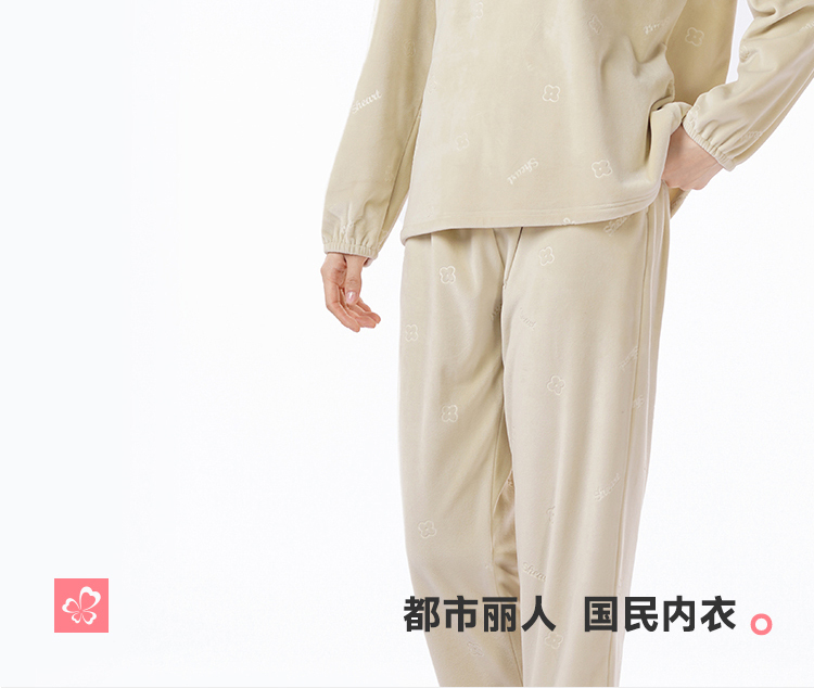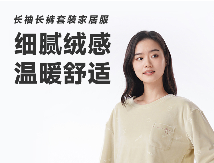 都市丽人睡衣海岛绒压花睡衣女士家居服长袖长裤海岛绒套装LHH2M5