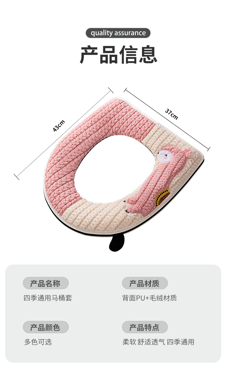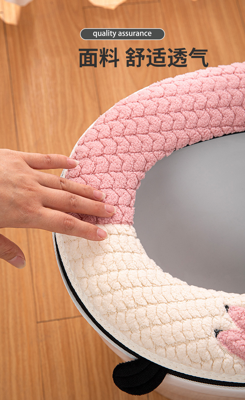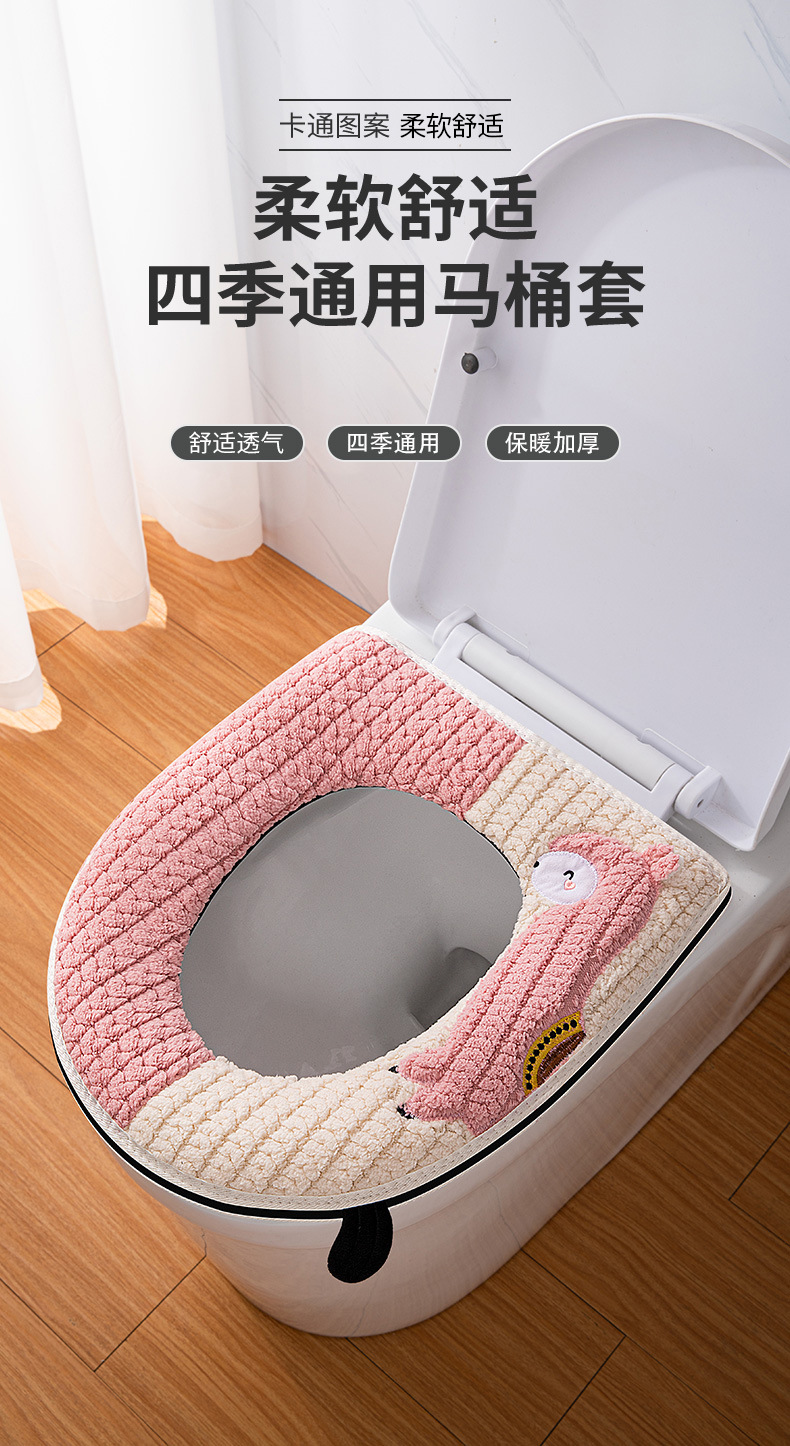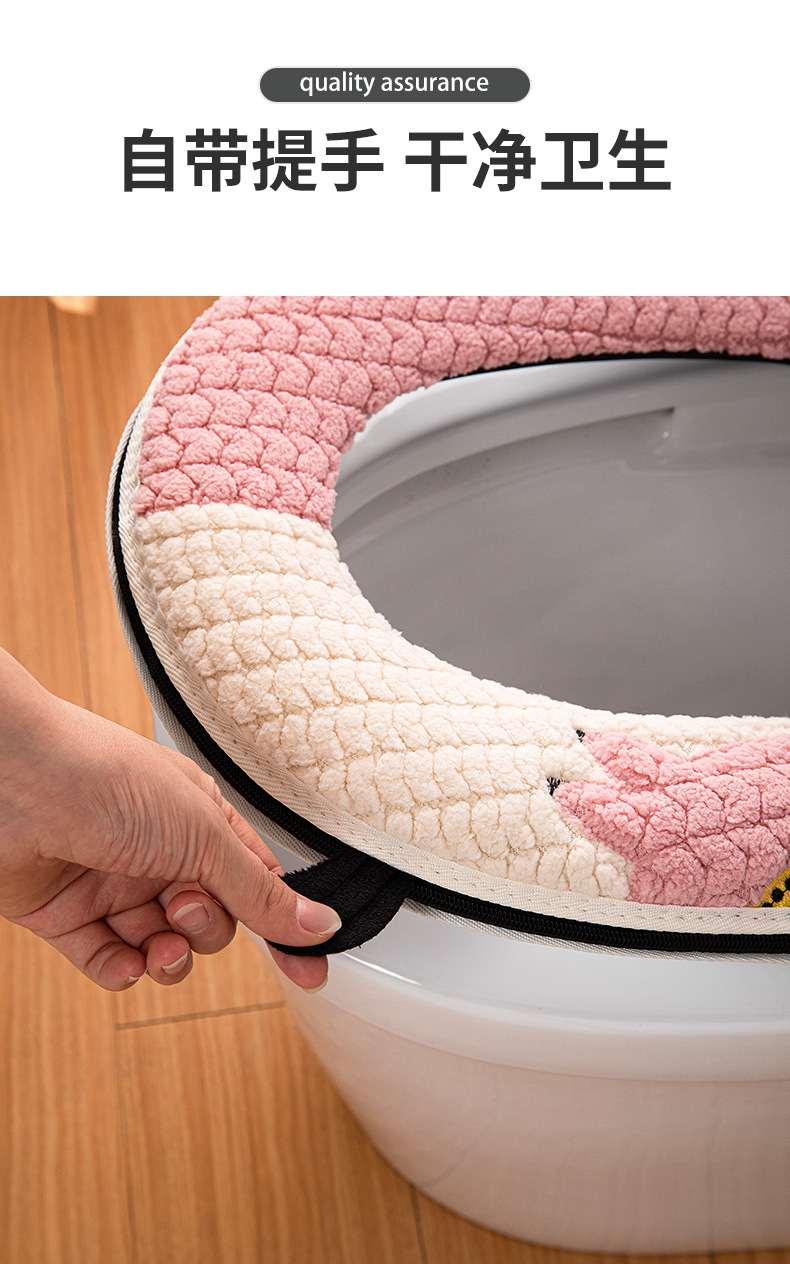【柔软舒适自带提手!马桶坐垫四季】易于清洗,不易掉毛拉链款马桶坐垫四季家用可爱刺绣马桶圈盖拉链式毛绒提手坐便套