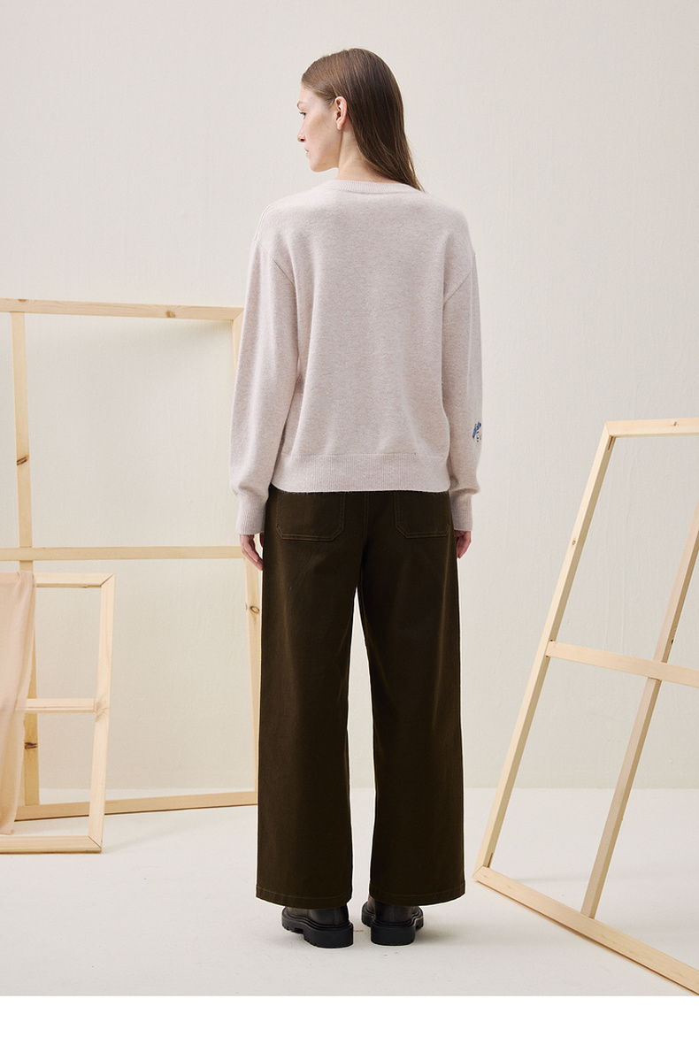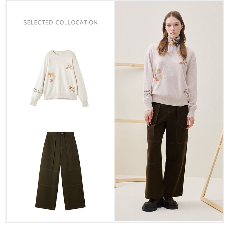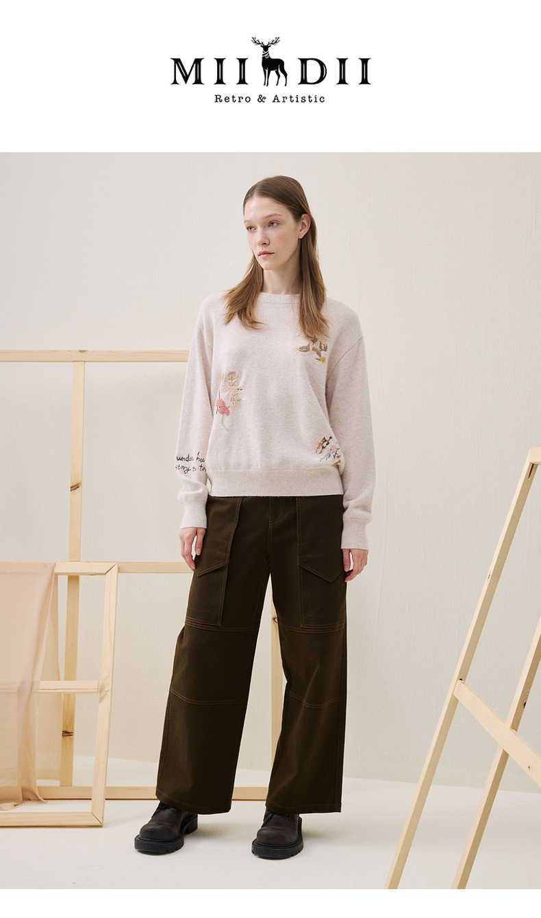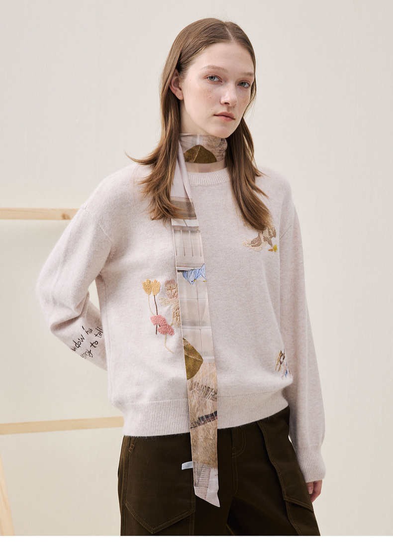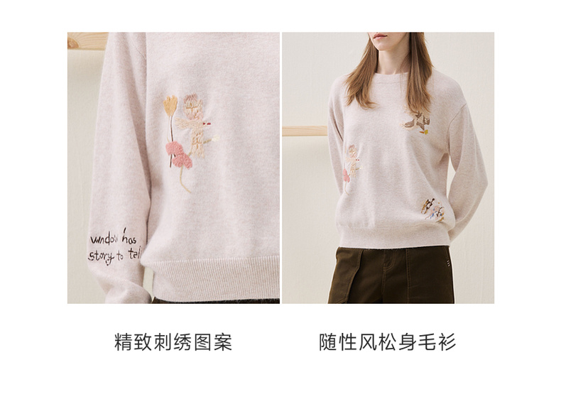 谜底套头针织衫长袖2025冬新品宽松刺绣柔软保暖毛衣女254MZ1859