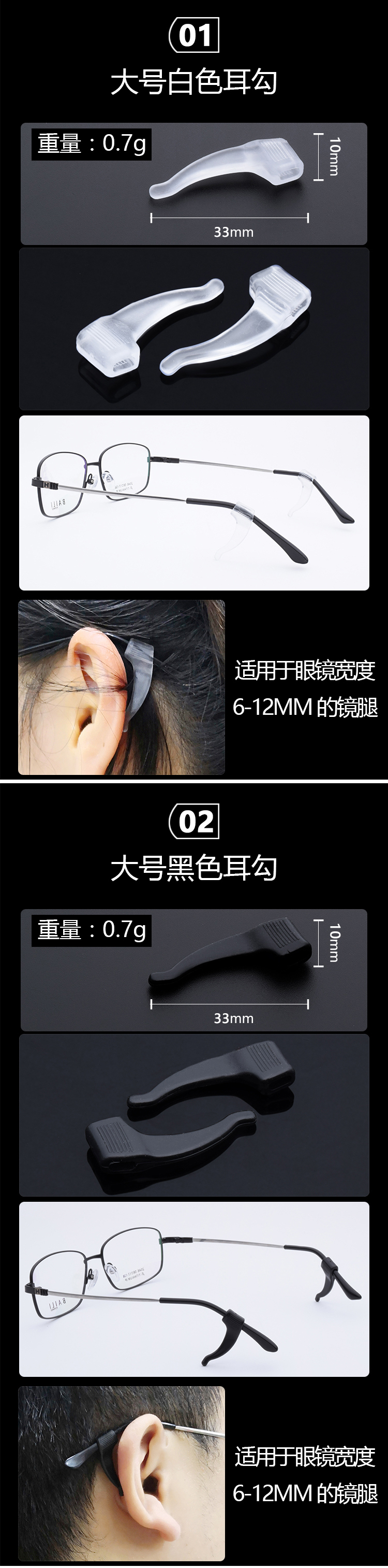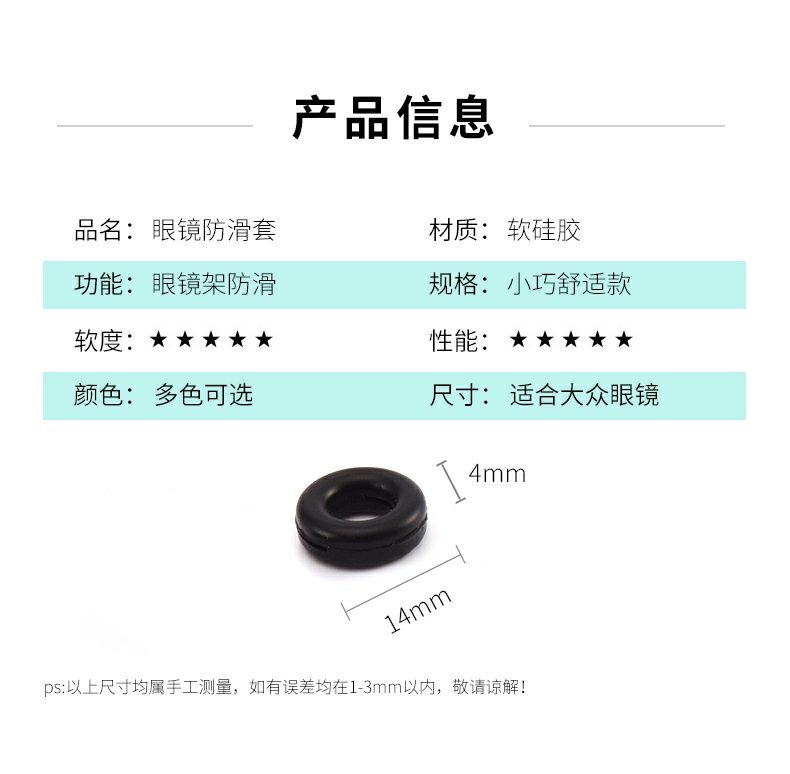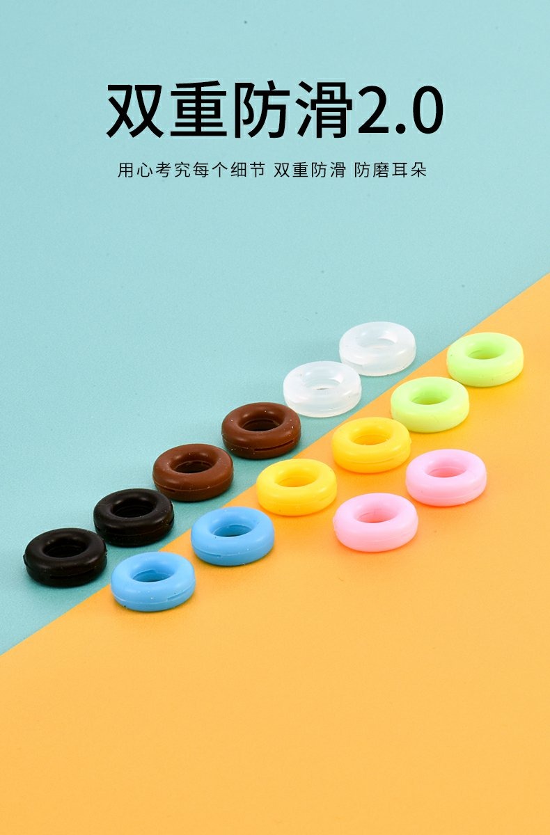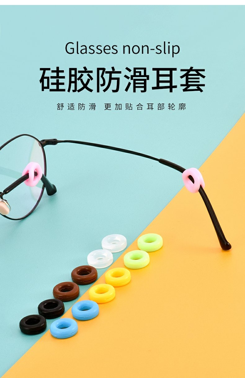 眼镜硅胶防滑套圆形长形固定圈眼镜脚套(颜色随机发)