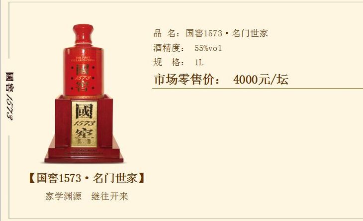 55度 国窖1573 名门世家 浓香型高度白酒 泸州老窖官方旗舰店