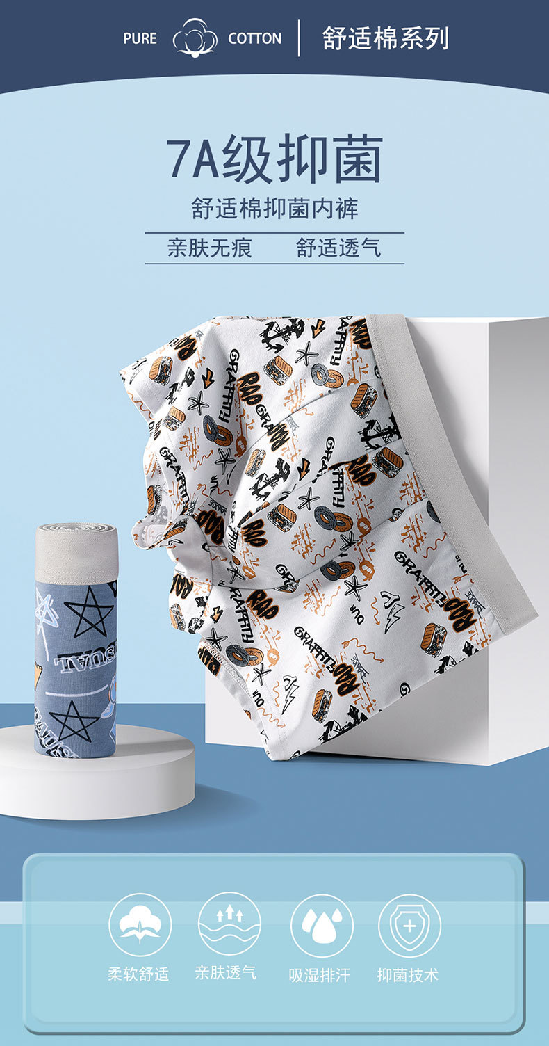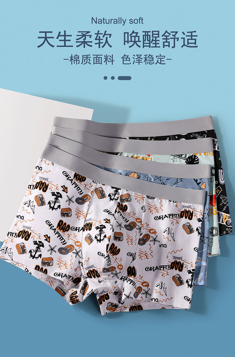 男士内裤冬季男土纯棉新款男生青少年a类印花四角内裤短裤裤衩