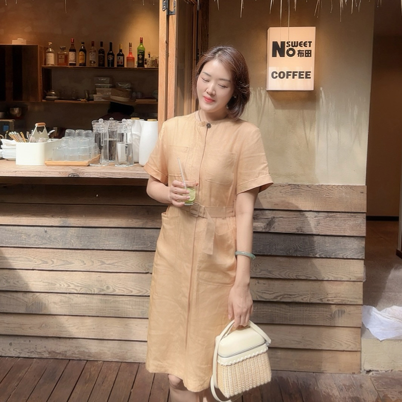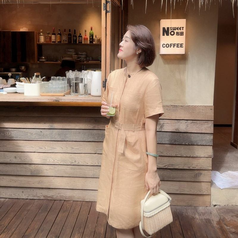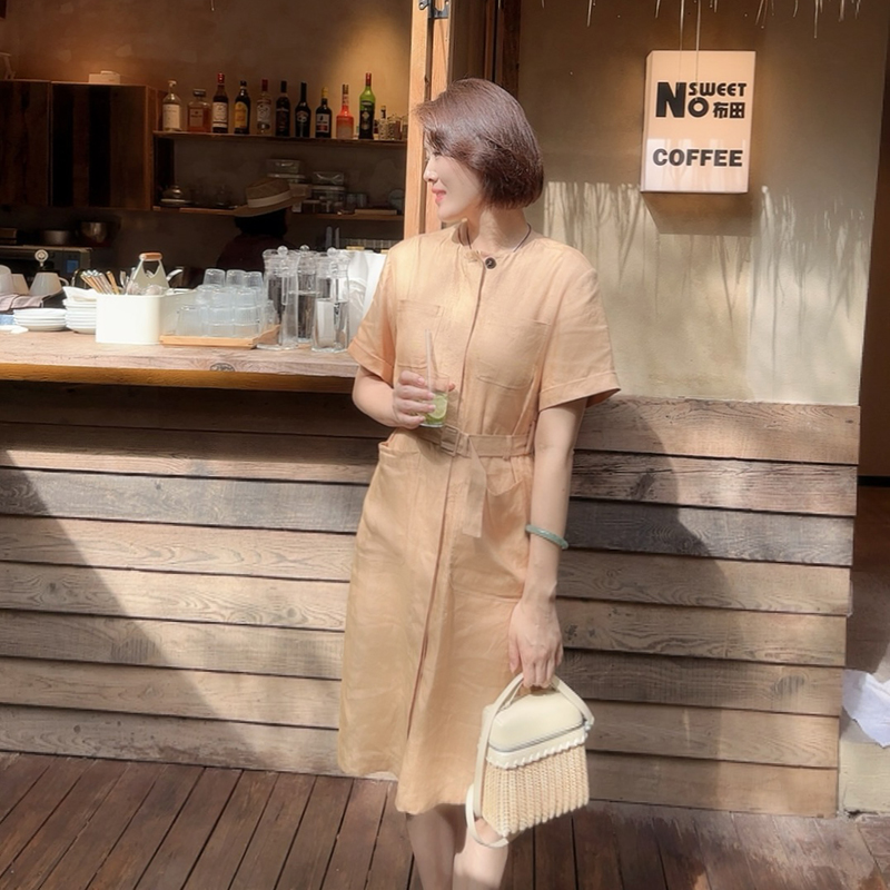 火桐hooton 高定系列 普洱氤氲 斜纹汉麻及膝连衣裙ZB9010