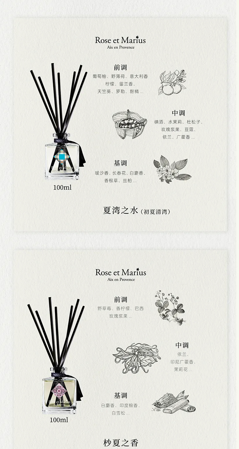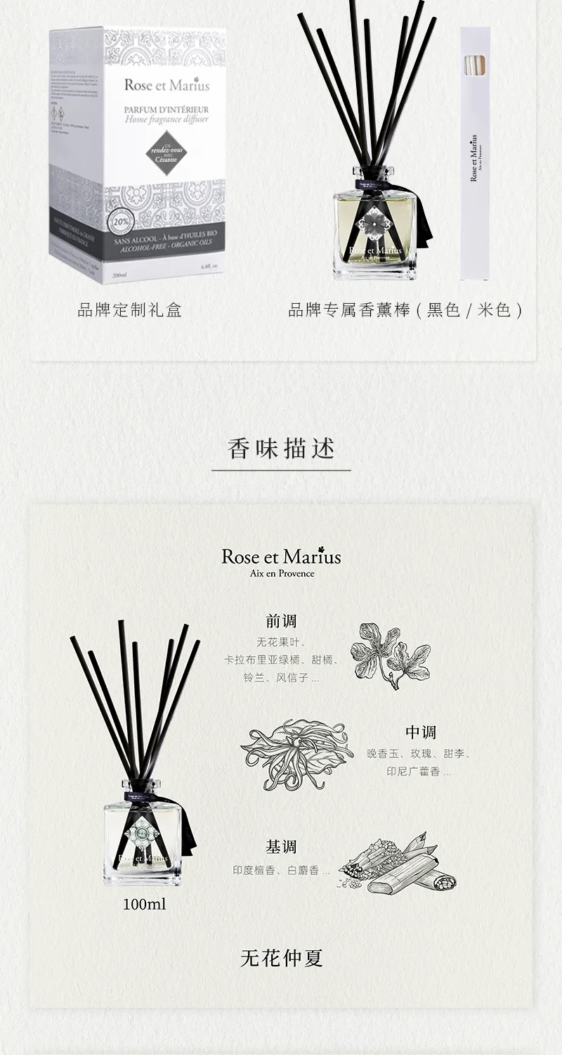 【小众沙龙香】馥说Rose et Marius 无火香薰礼盒 法国进口普罗旺斯大师调香持久扩香 100ml