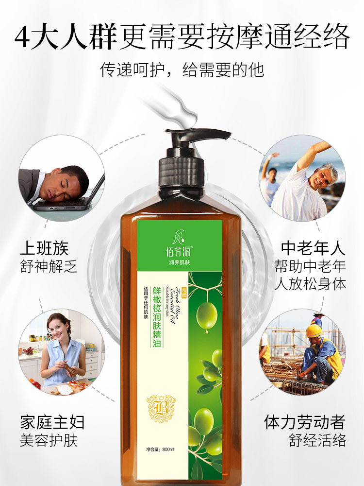 佰芳源橄榄润肤按摩精油全身通经络肩颈推背铁蚕豆从产检德国文化