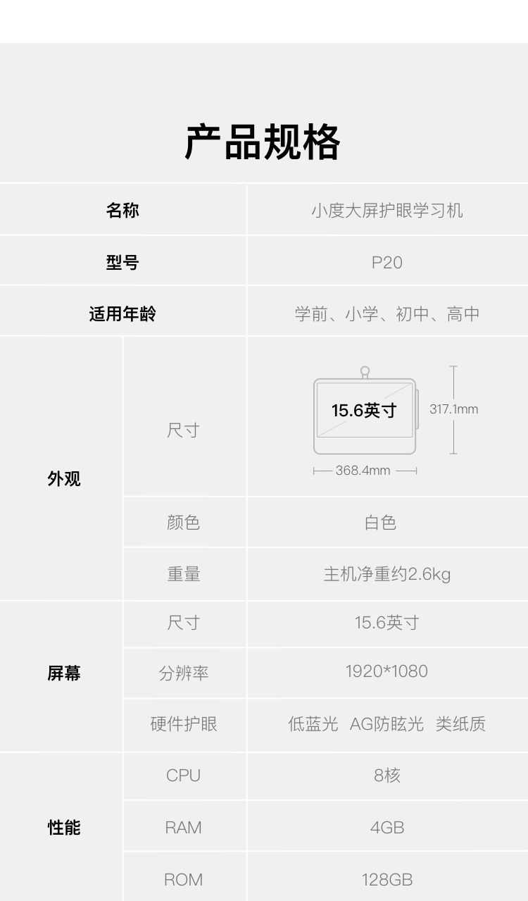 小度大屏护眼学习机P20 15.6英寸智能陪娃居家学习-信聚