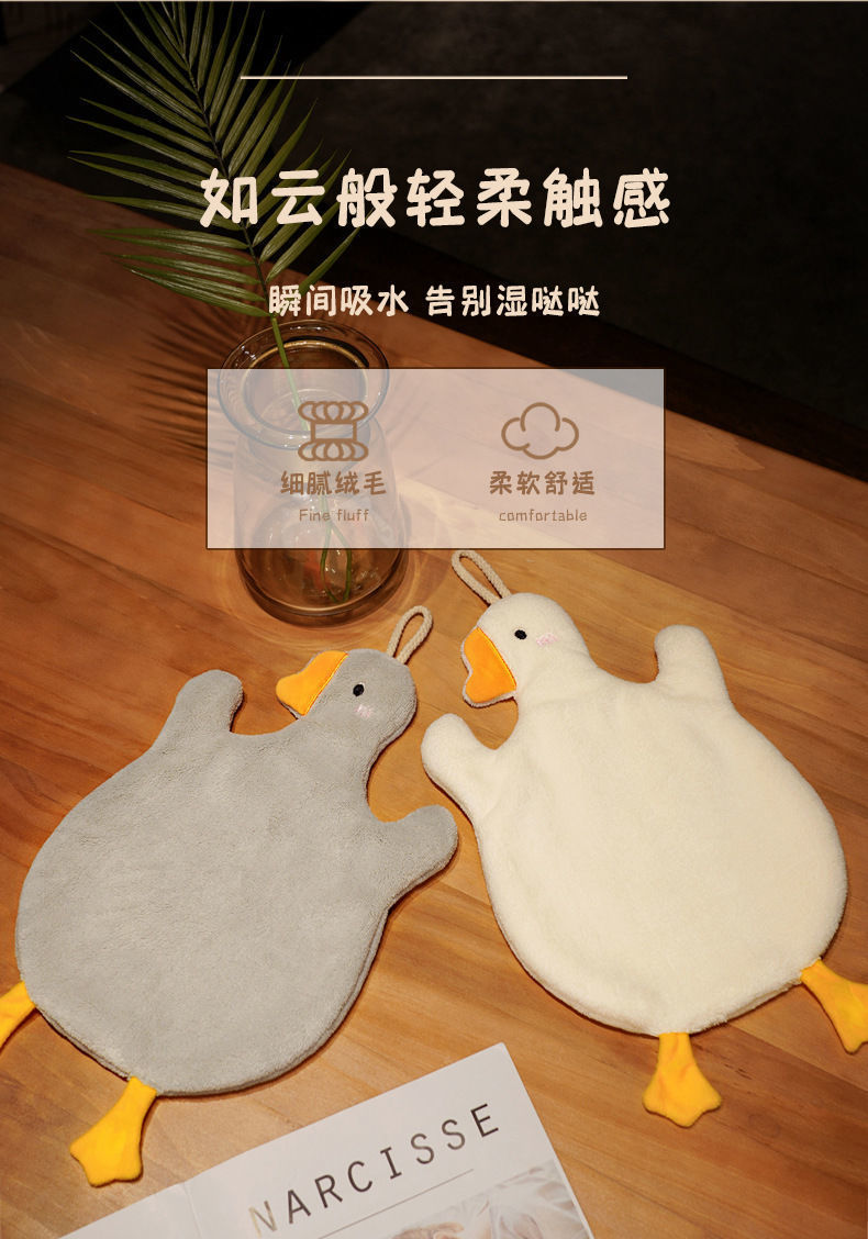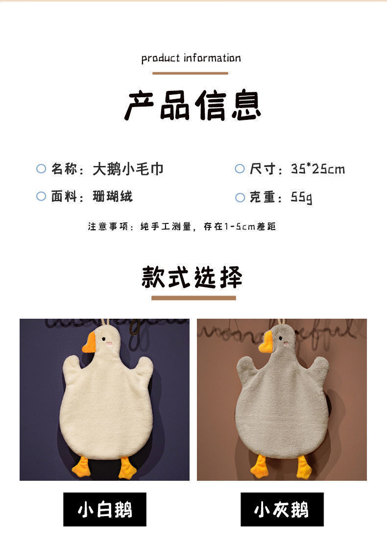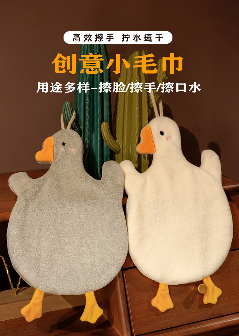 「9.9元包邮!加厚款」创意小毛巾 卡通白鹅擦手巾珊瑚绒吸水可挂式擦手毛巾柔软可爱擦手布儿童手巾居家布艺