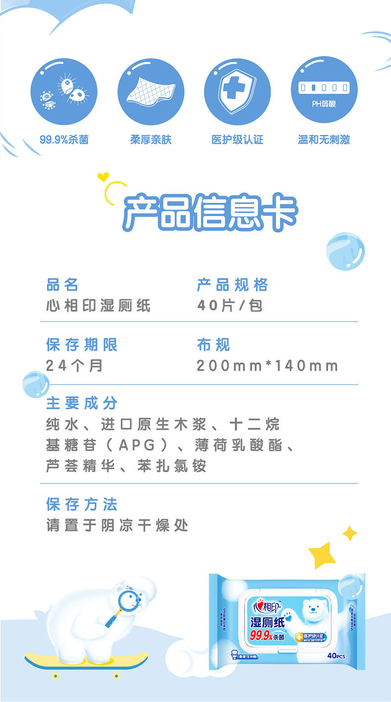 心相印湿厕纸可冲散,方便实用。私处清洁,无需担忧,擦屁屁湿巾家庭实惠装,让您和家人始终保持清爽!
