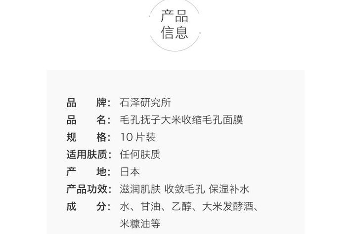 石泽研究所 毛孔抚子大米收缩毛孔面膜 10片装 日本