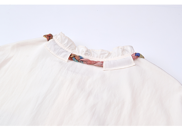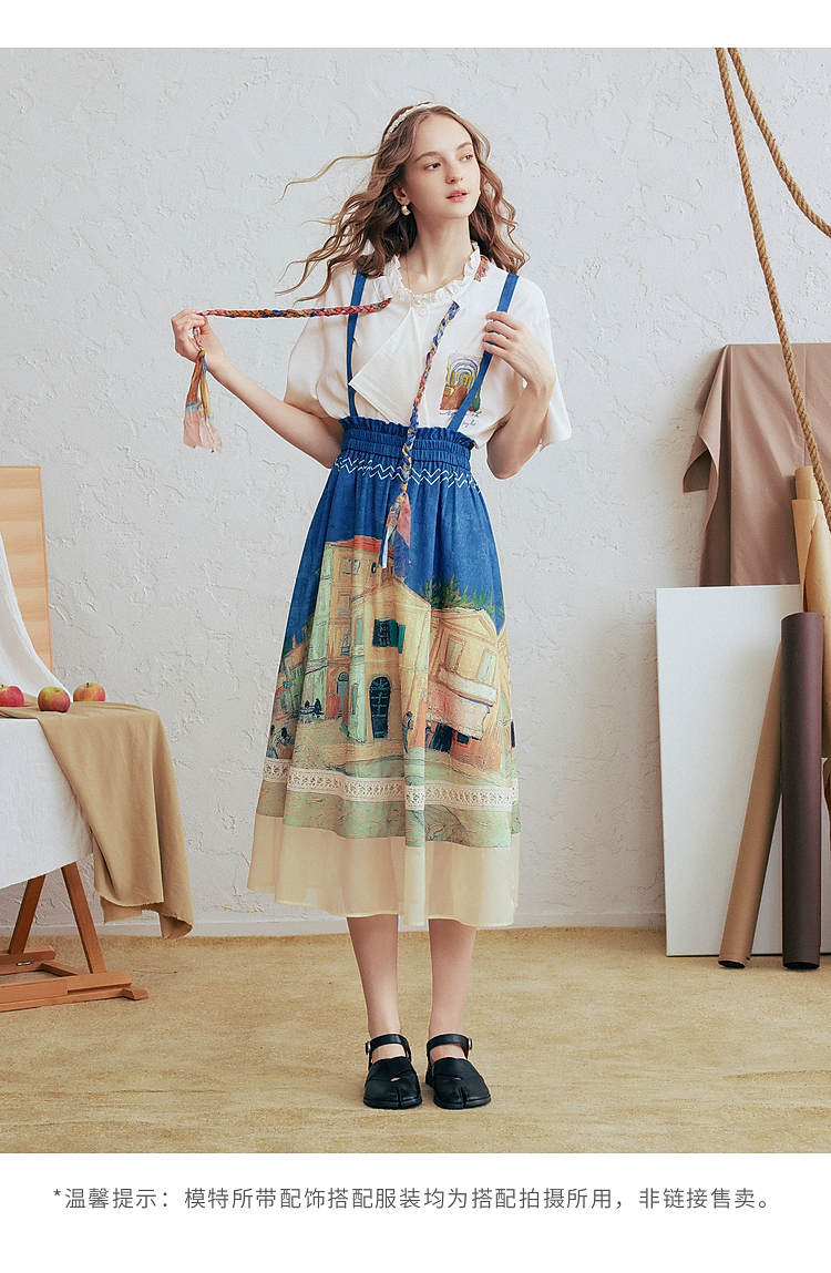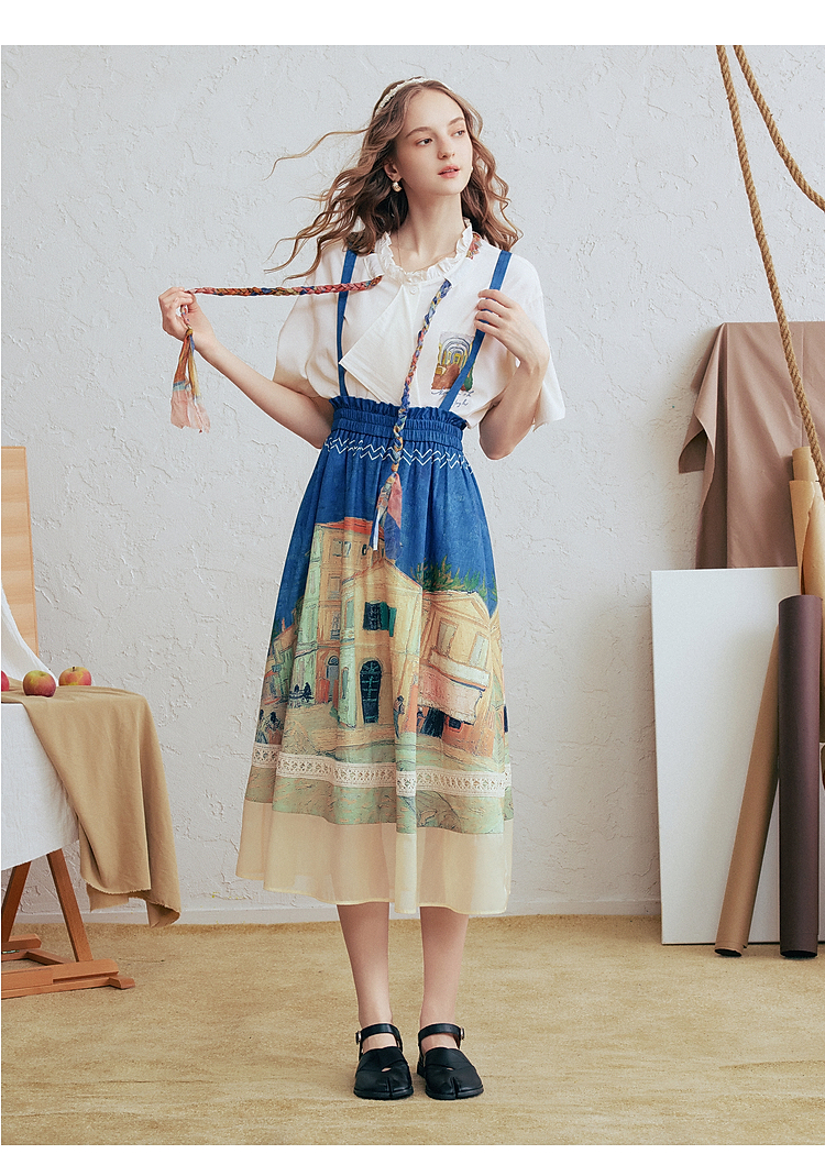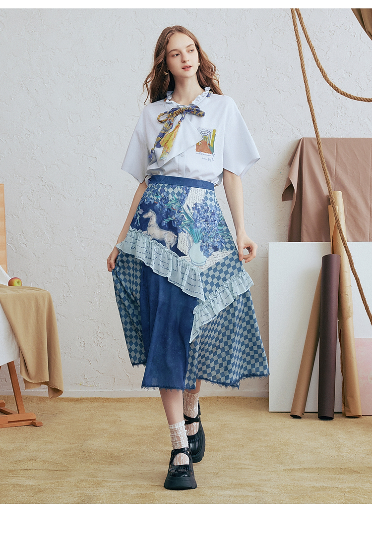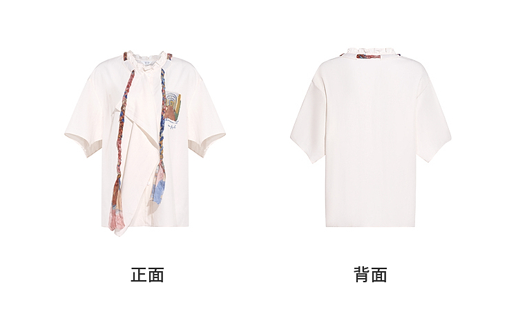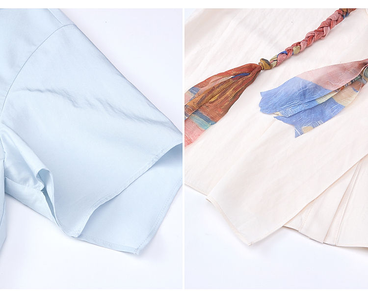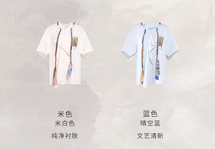 两三事梵高文艺薄翼断章2026春新款麻花辫绑带可拆领带印花衬衫女