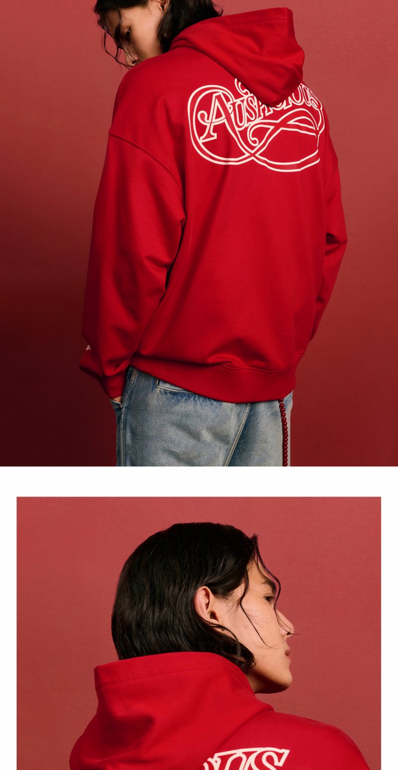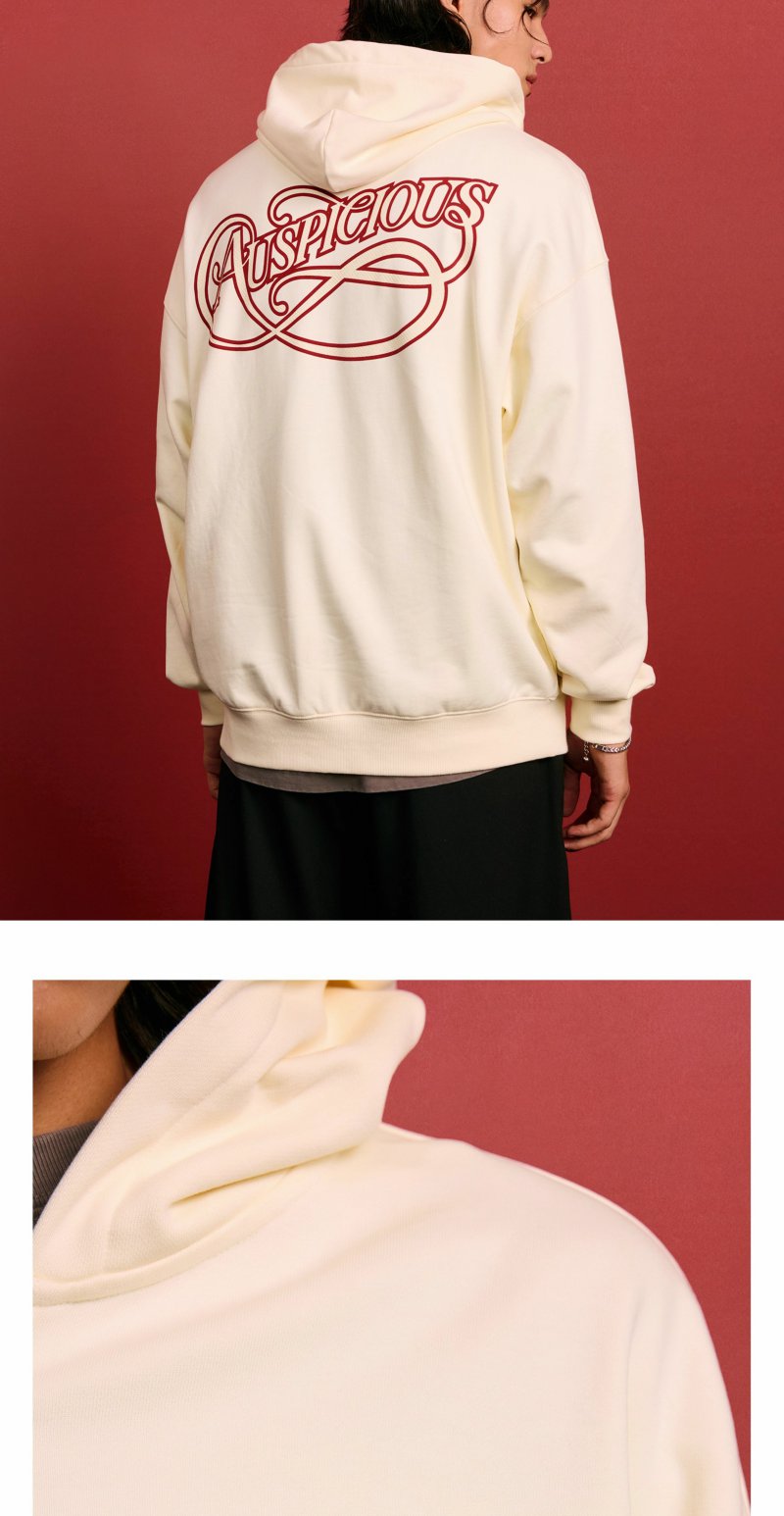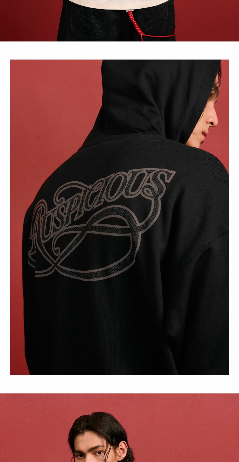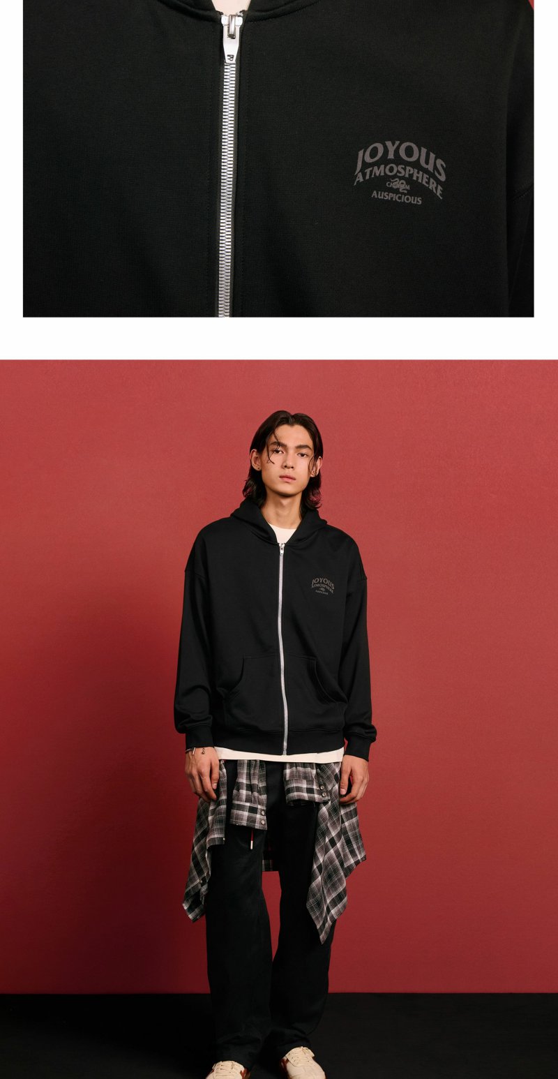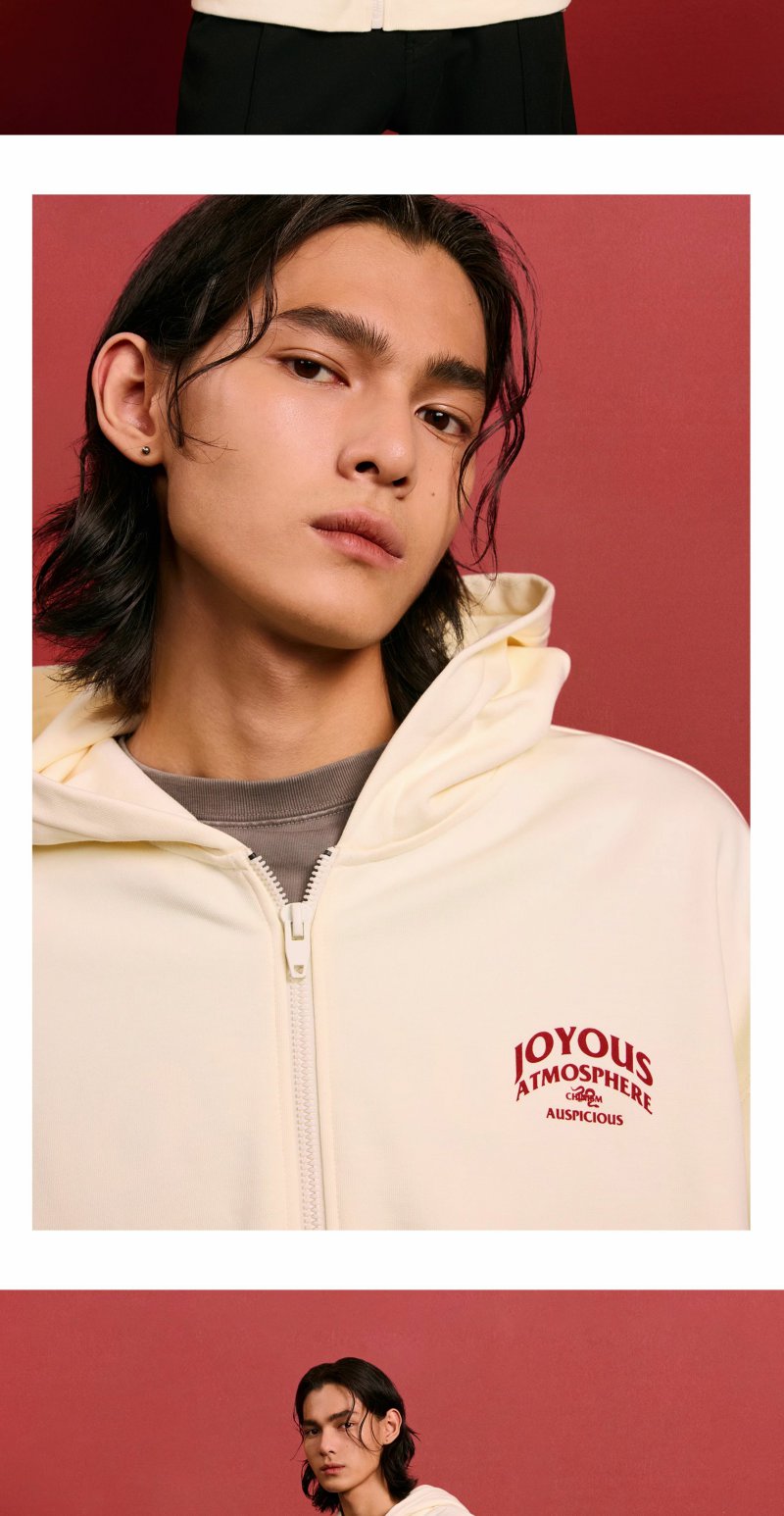 CHINISM折扣季 红色连帽开衫卫衣男秋季宽松发泡印花重磅拉链外套