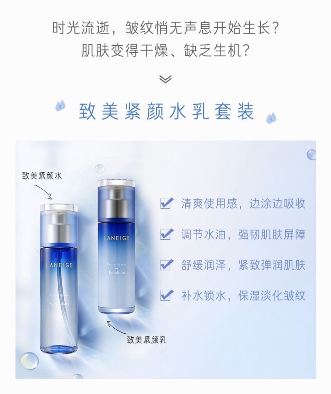 兰芝雪凝水乳套盒抗皱提亮紧致补水保湿