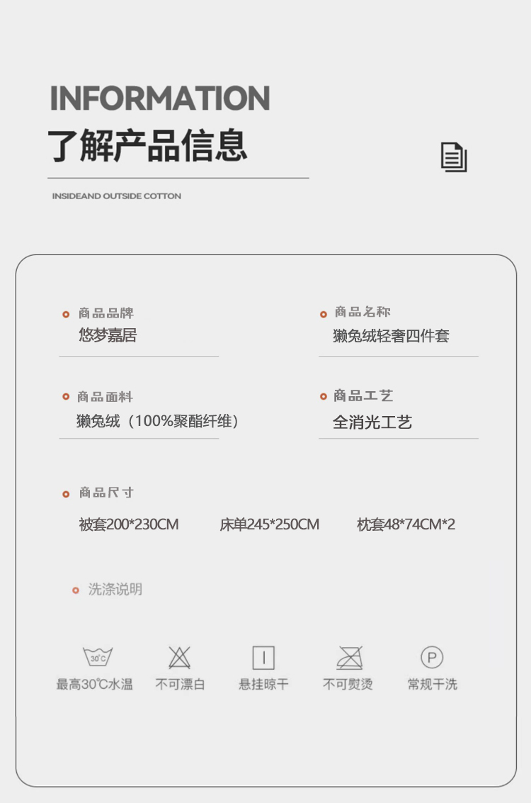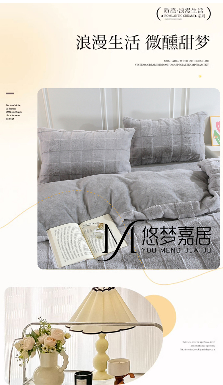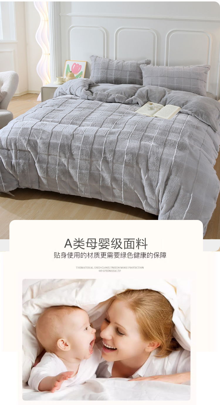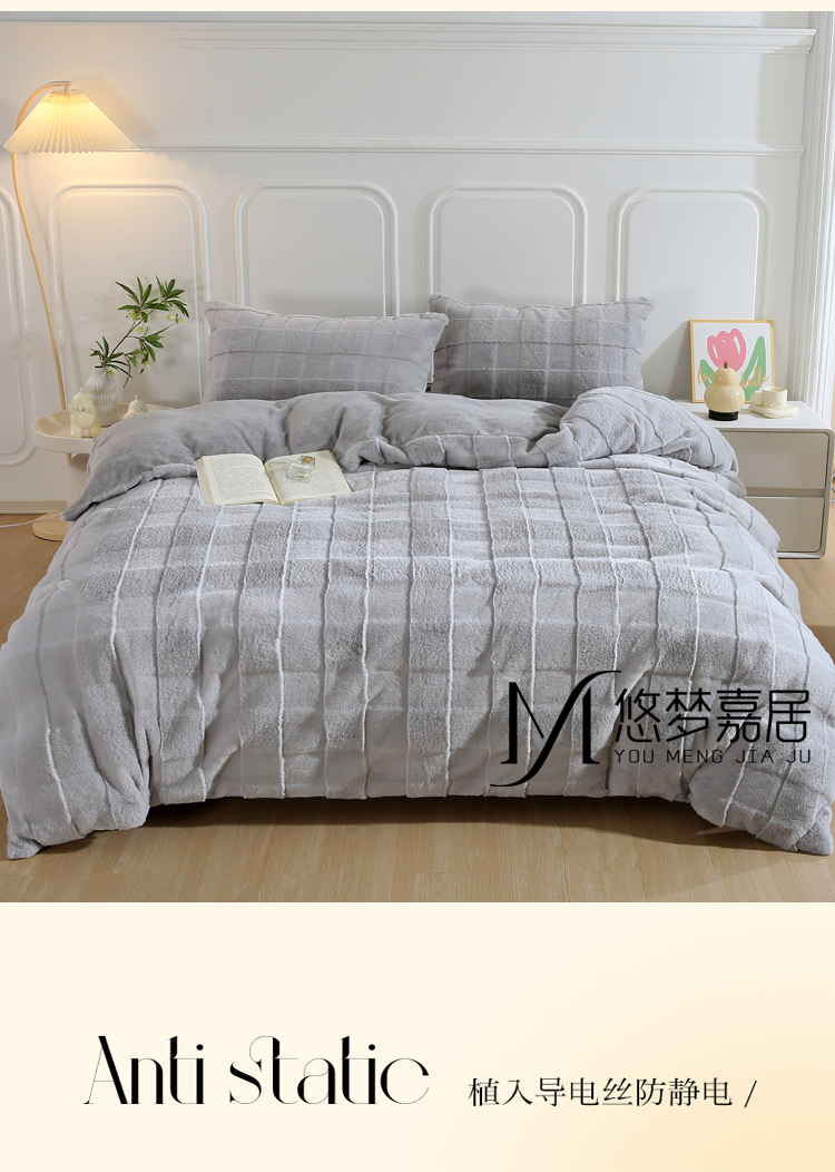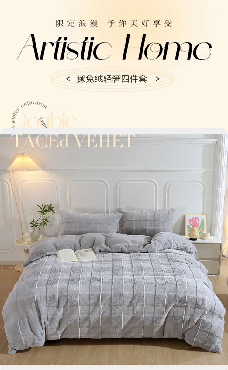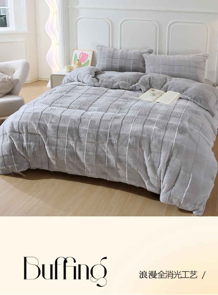 【自营】悠梦嘉居獭兔绒轻奢四件套天际灰4500g