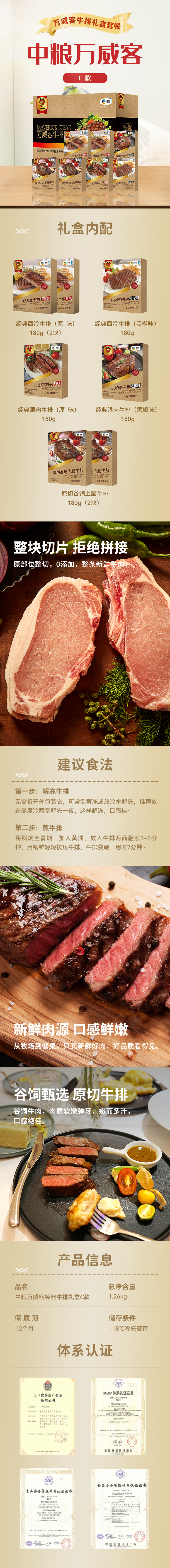 【自营】中粮万威客经典牛排礼盒C款1260g