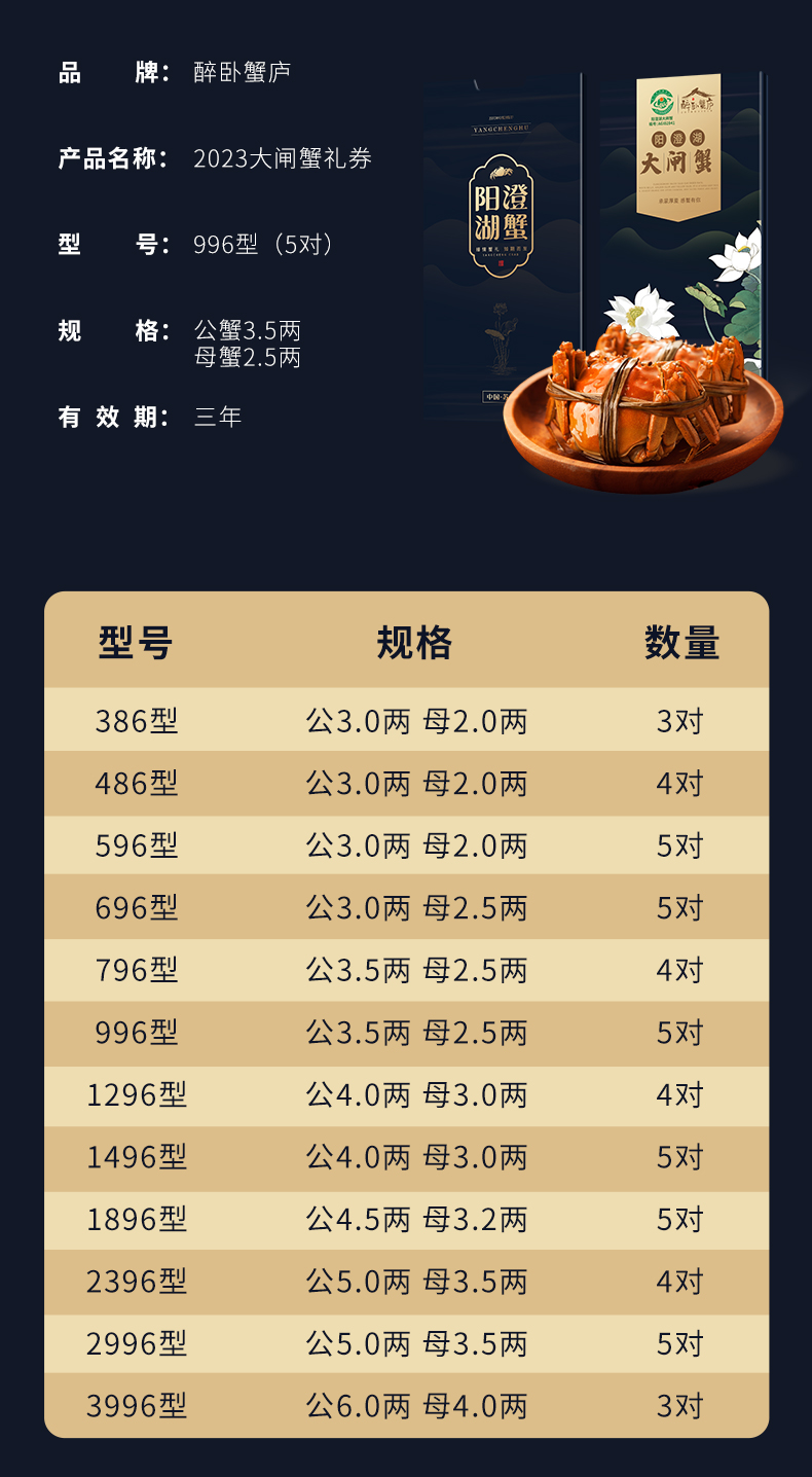 醉卧蟹庐996型阳澄湖大闸蟹卡券