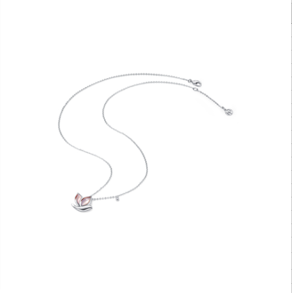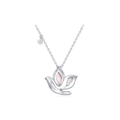 周大福和平天使系列铂金粉贝(鸽血红珐琅)莲花鸽项链