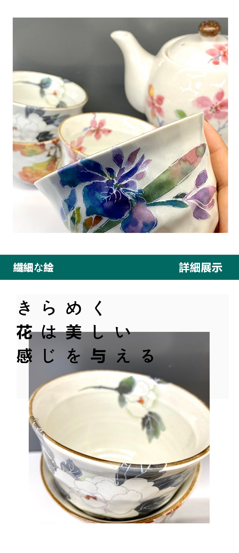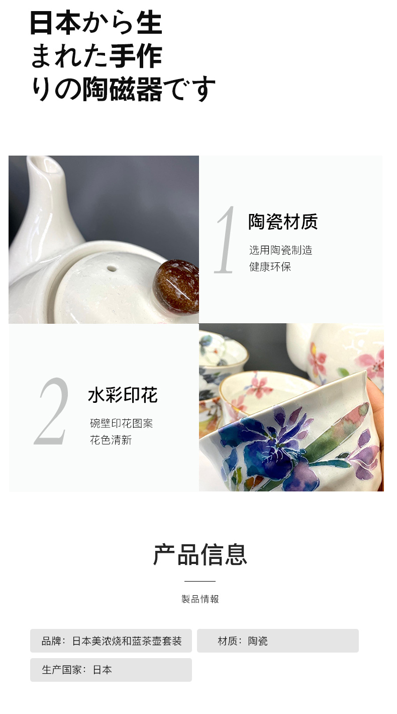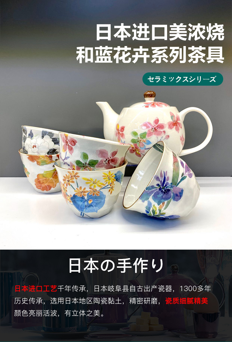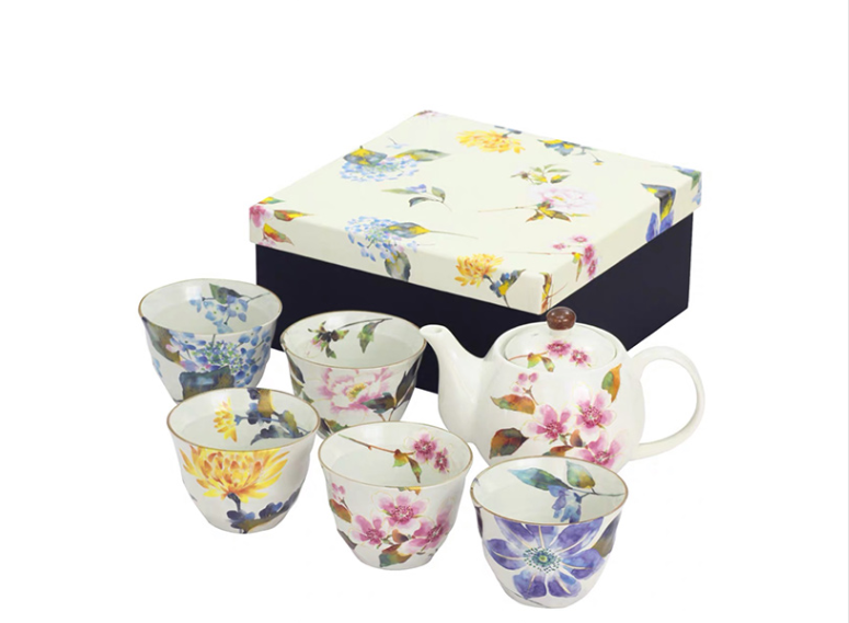 日本进口和蓝花卉繁花樱花茶壶茶杯1壶5杯套装陶瓷和风茶具