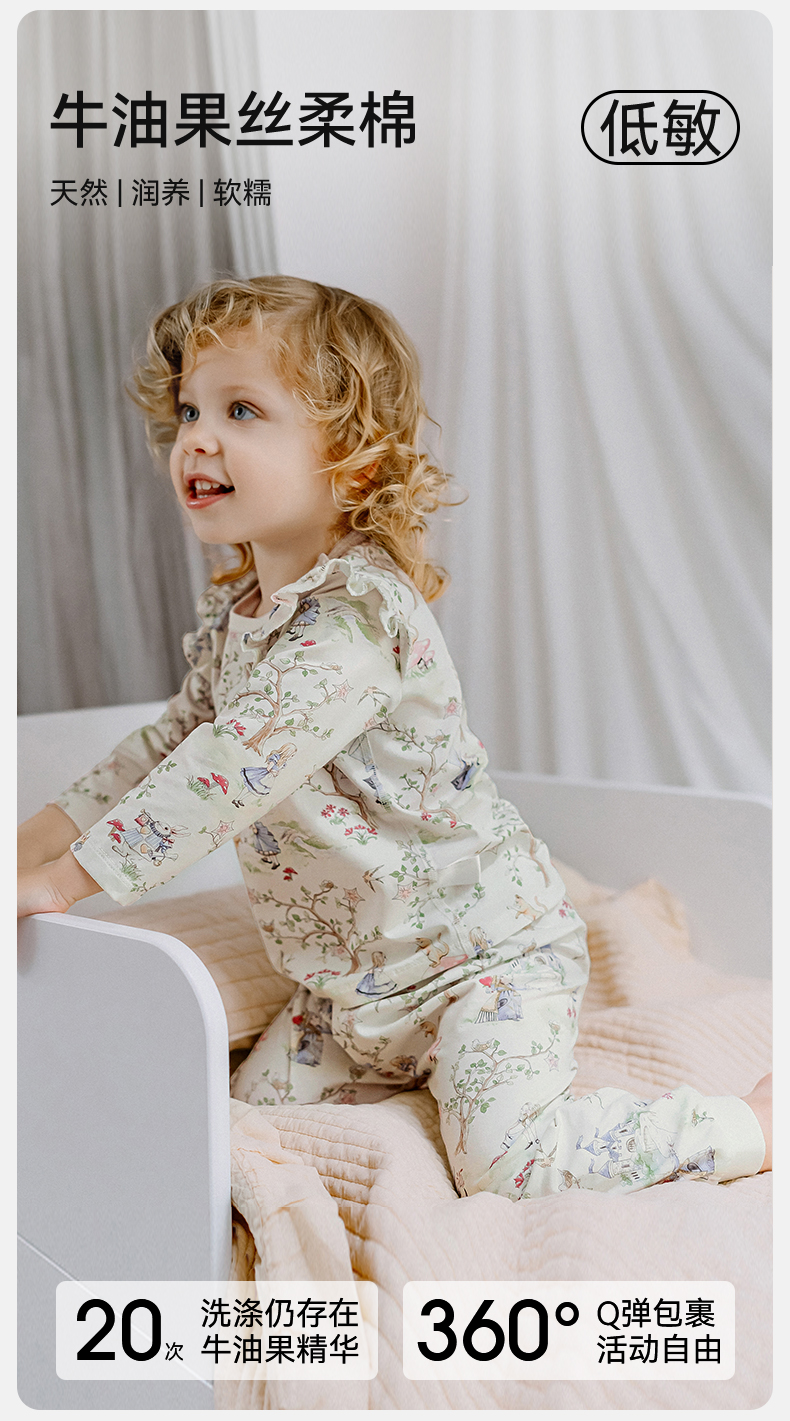 【宝宝服饰】嫚熙牛油果丝柔棉新生宝宝睡衣套装儿童衣服春秋季新品男女童套装