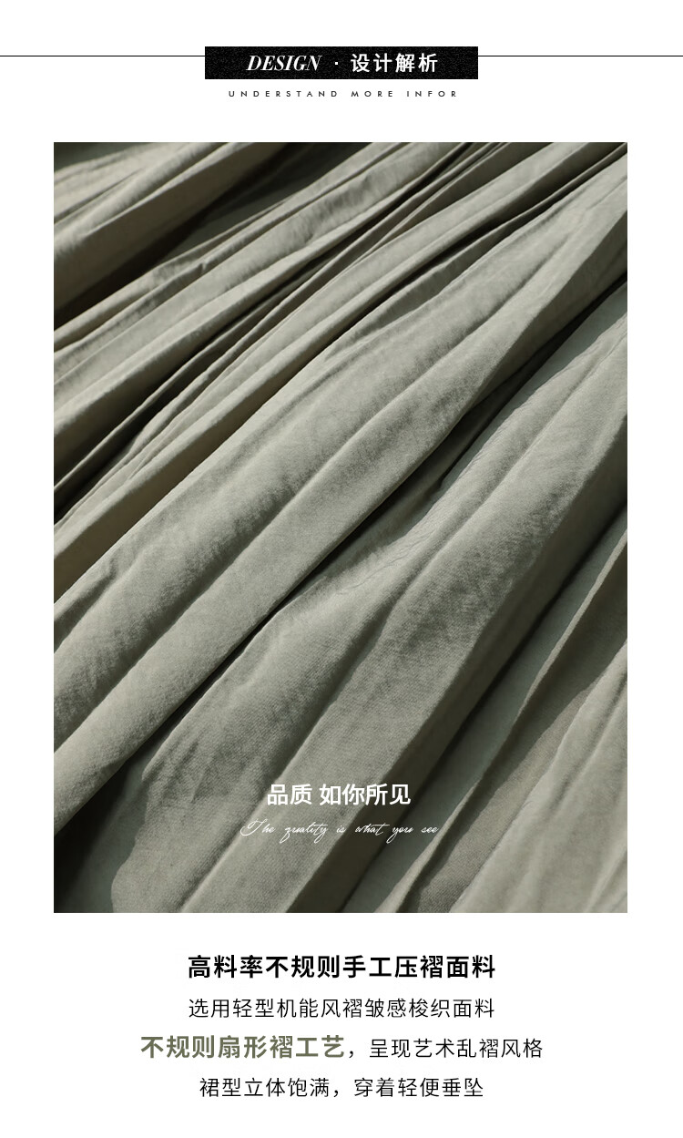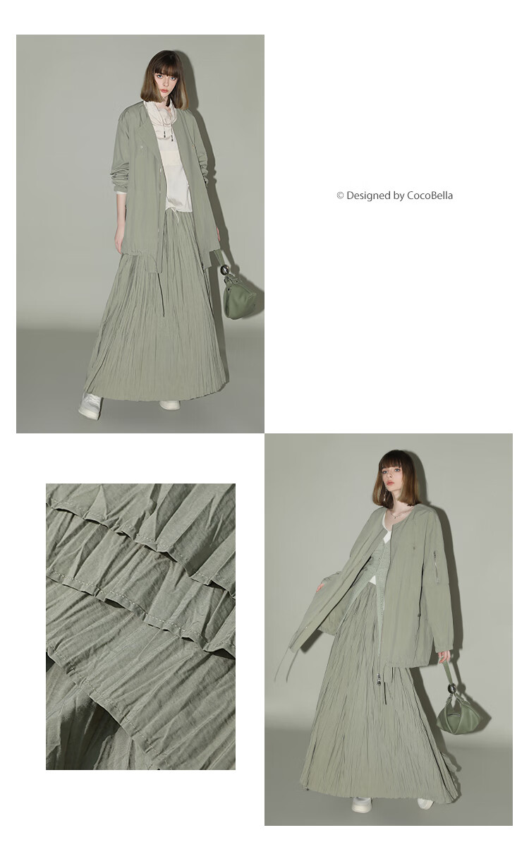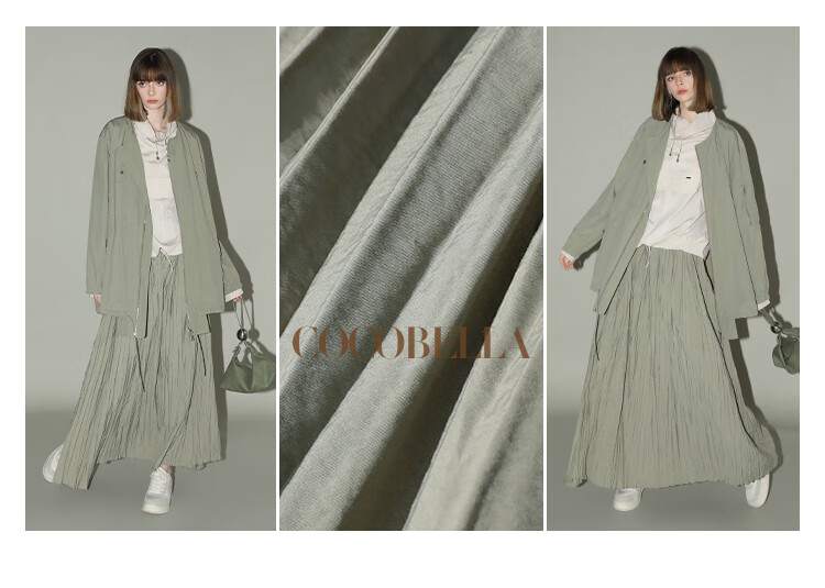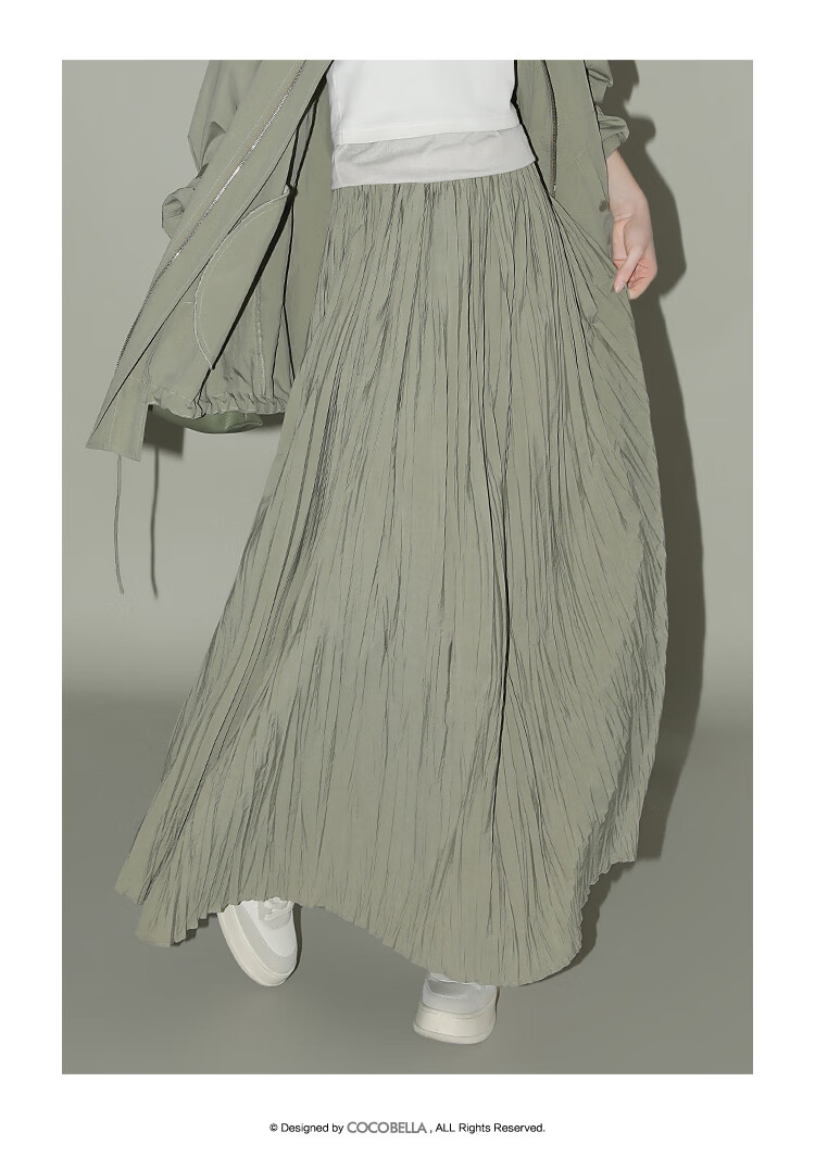 COCOBELLA重工3米大摆压褶半身裙女工装风伞裙遮胯长裙HS7027