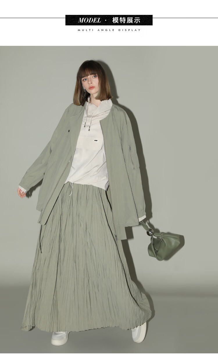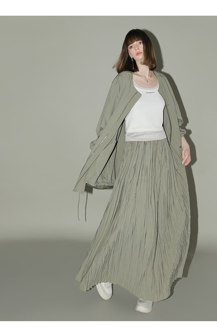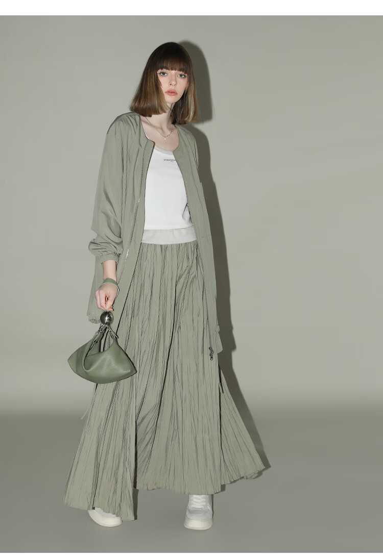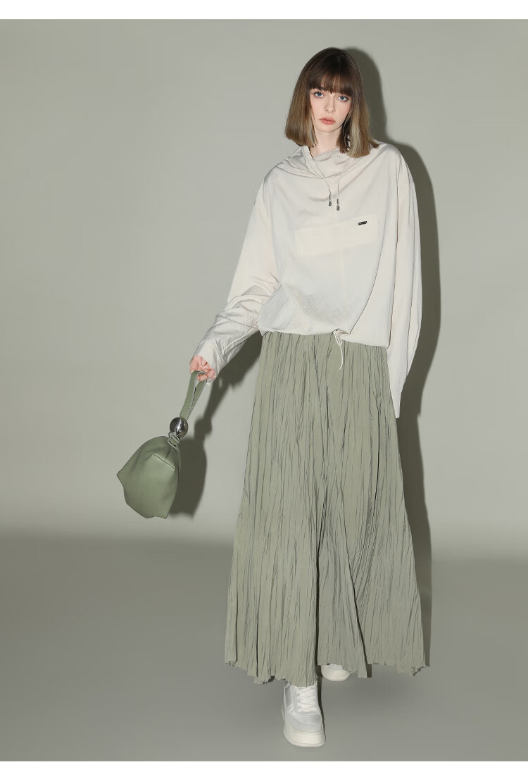 COCOBELLA重工3米大摆压褶半身裙女工装风伞裙遮胯长裙HS7027