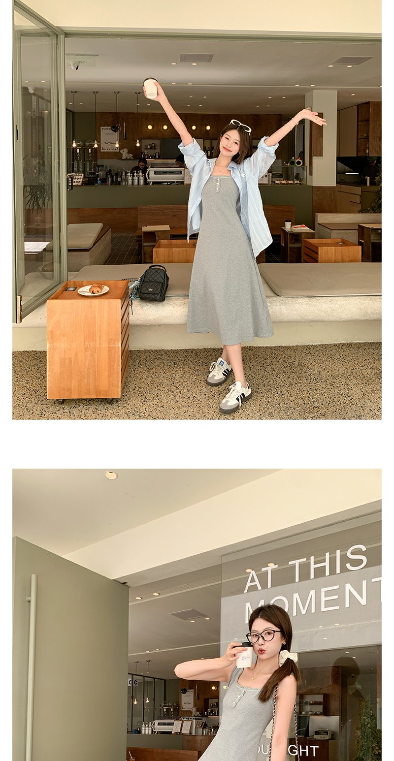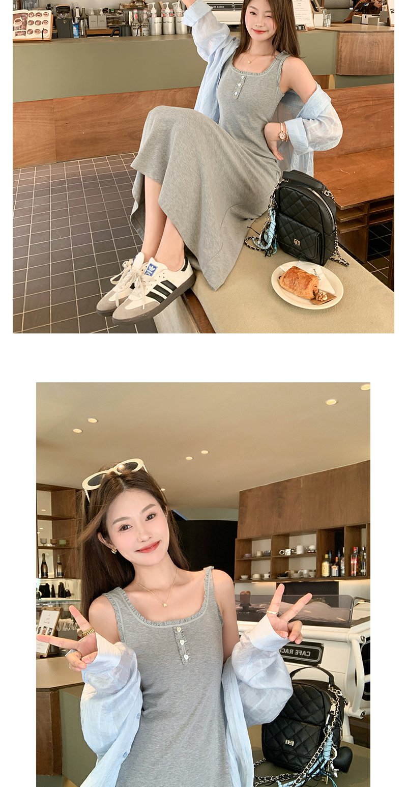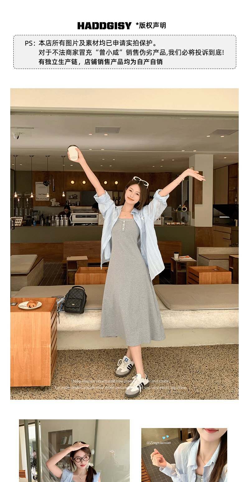 <曾小咸推荐>韩系百搭灰色背心吊带连衣裙