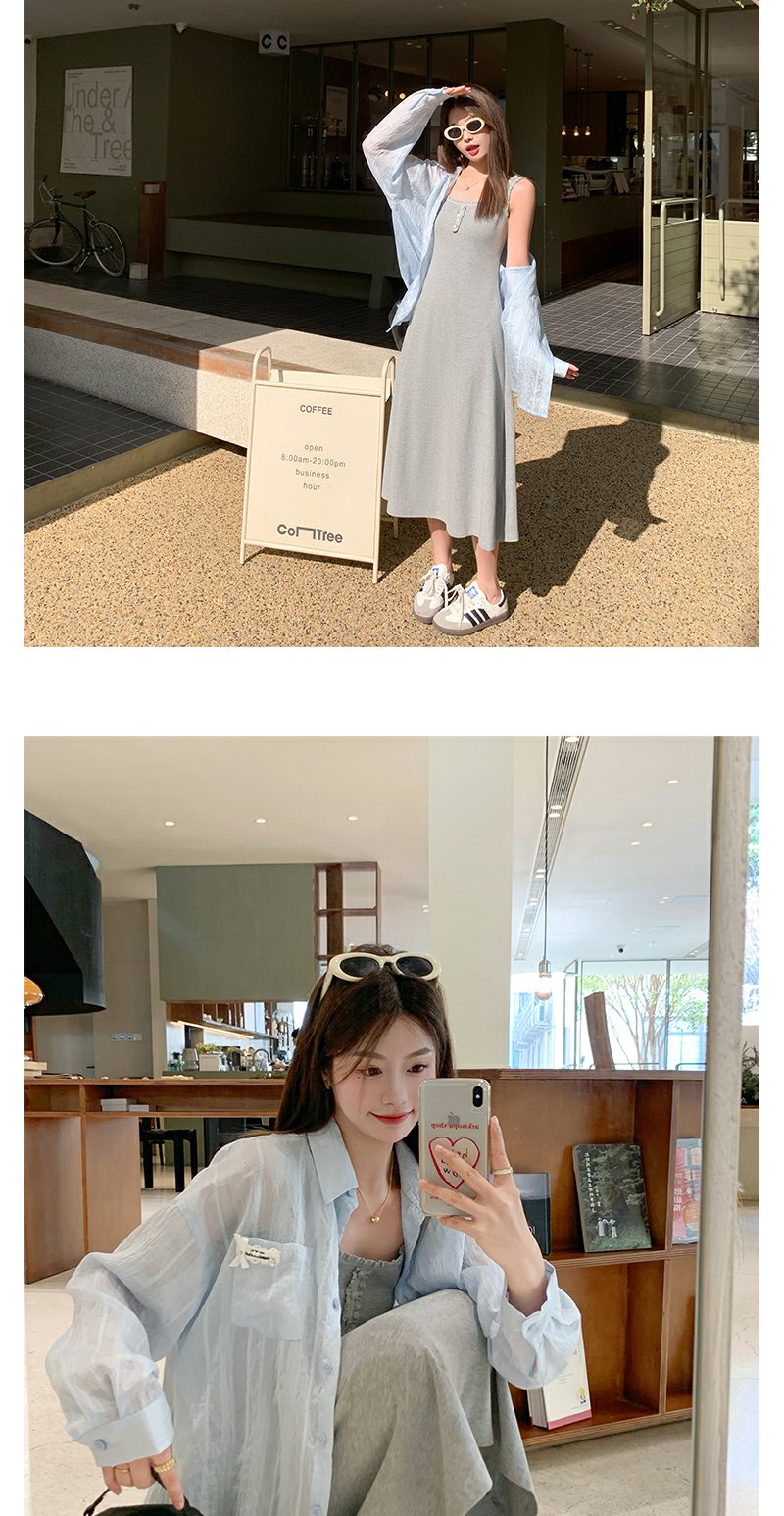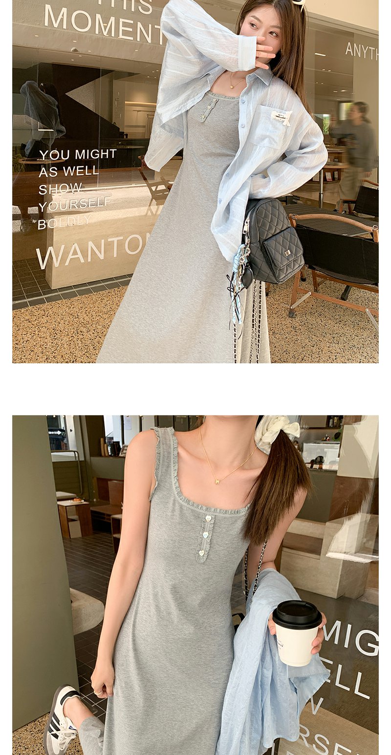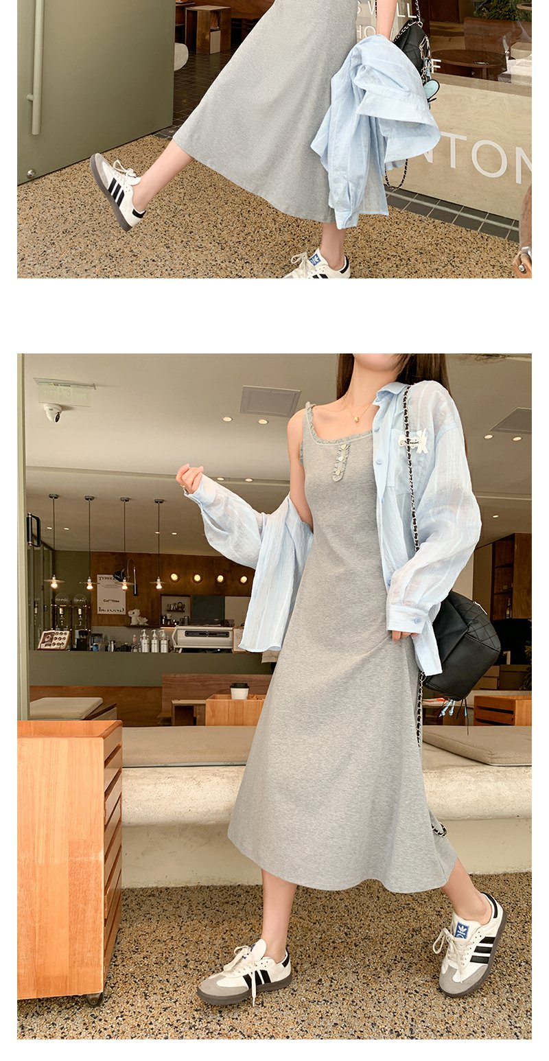 <曾小咸推荐>韩系百搭灰色背心吊带连衣裙