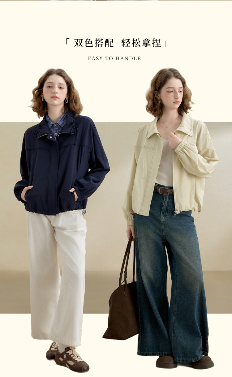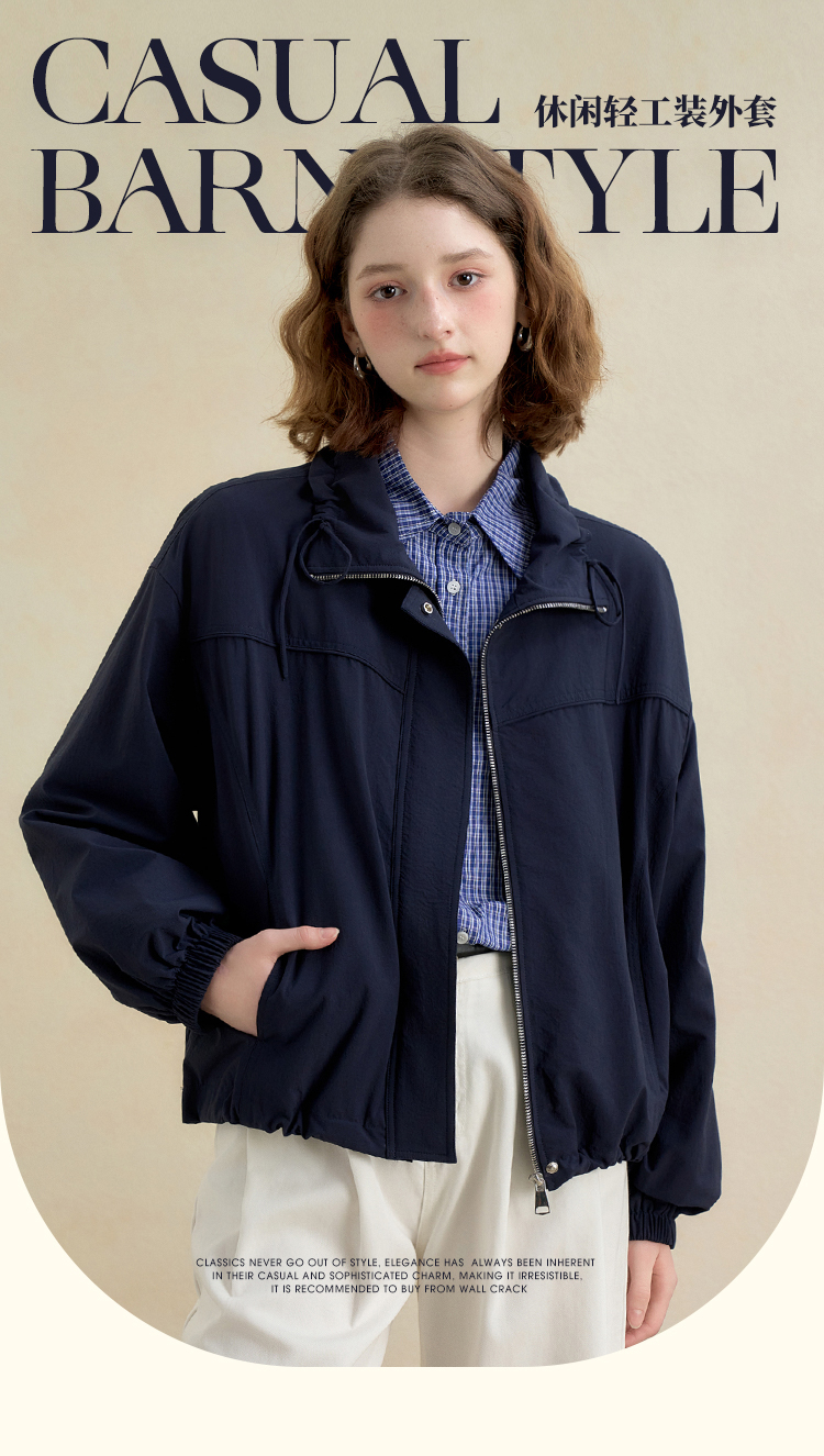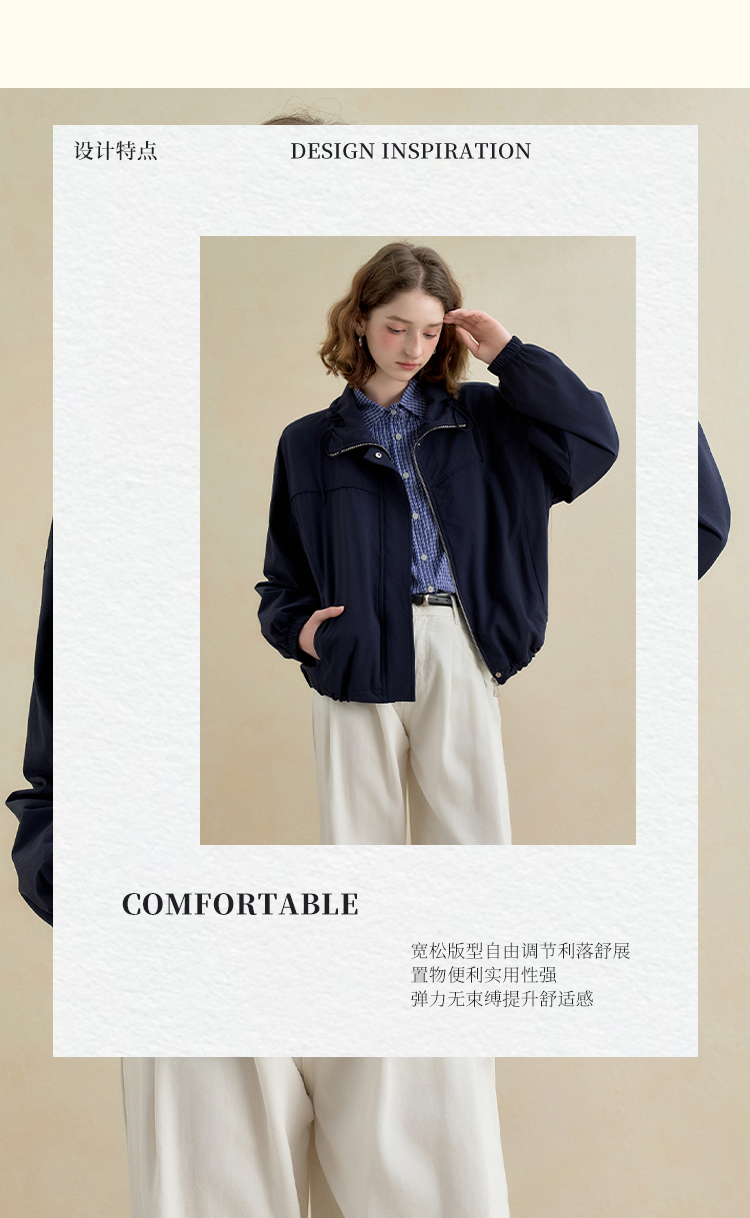 西遇美式复古工装夹克外套女秋季宽松显瘦棒球服通勤短款上衣V2951196