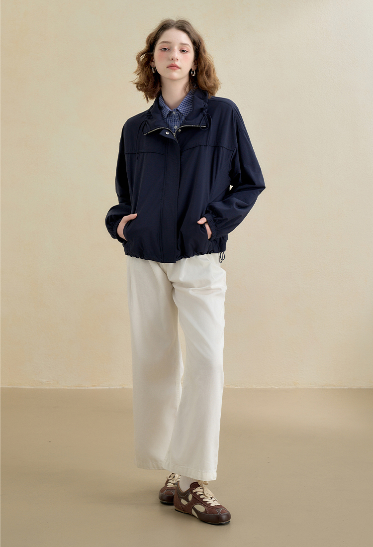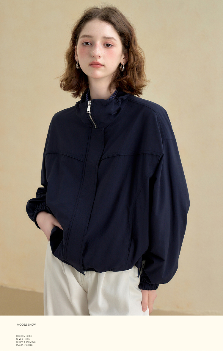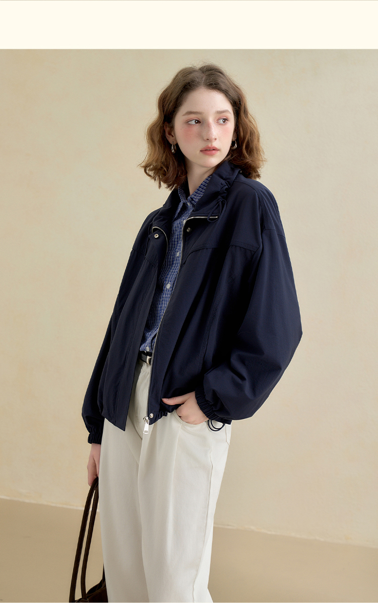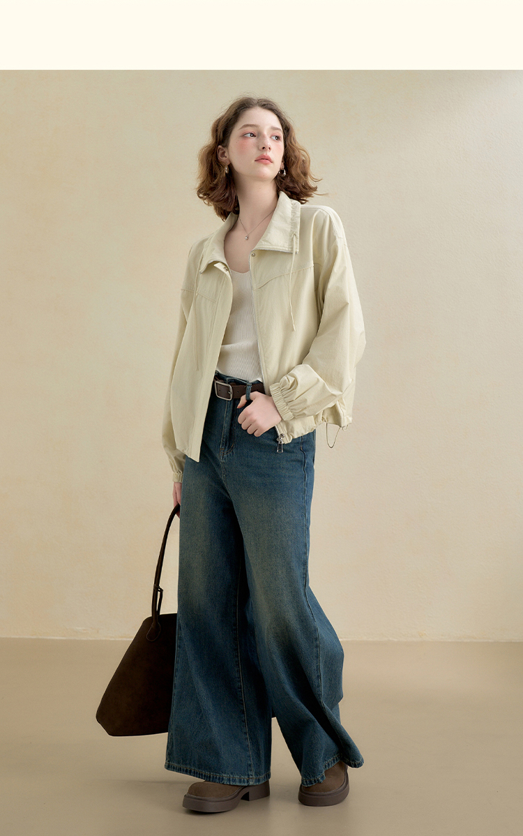 西遇美式复古工装夹克外套女秋季宽松显瘦棒球服通勤短款上衣V2951196