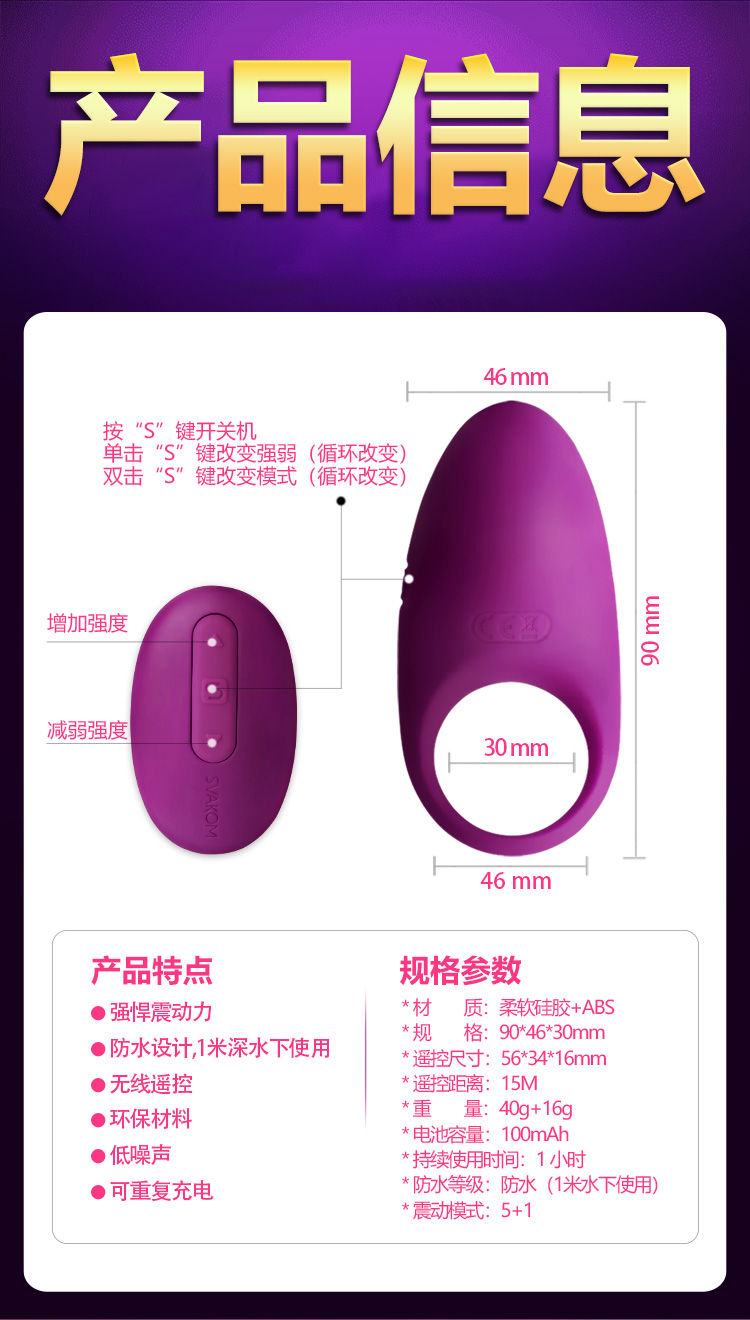司沃康 SVAKOM Winni 温妮遥控震动环 情趣套环 男用情趣用品