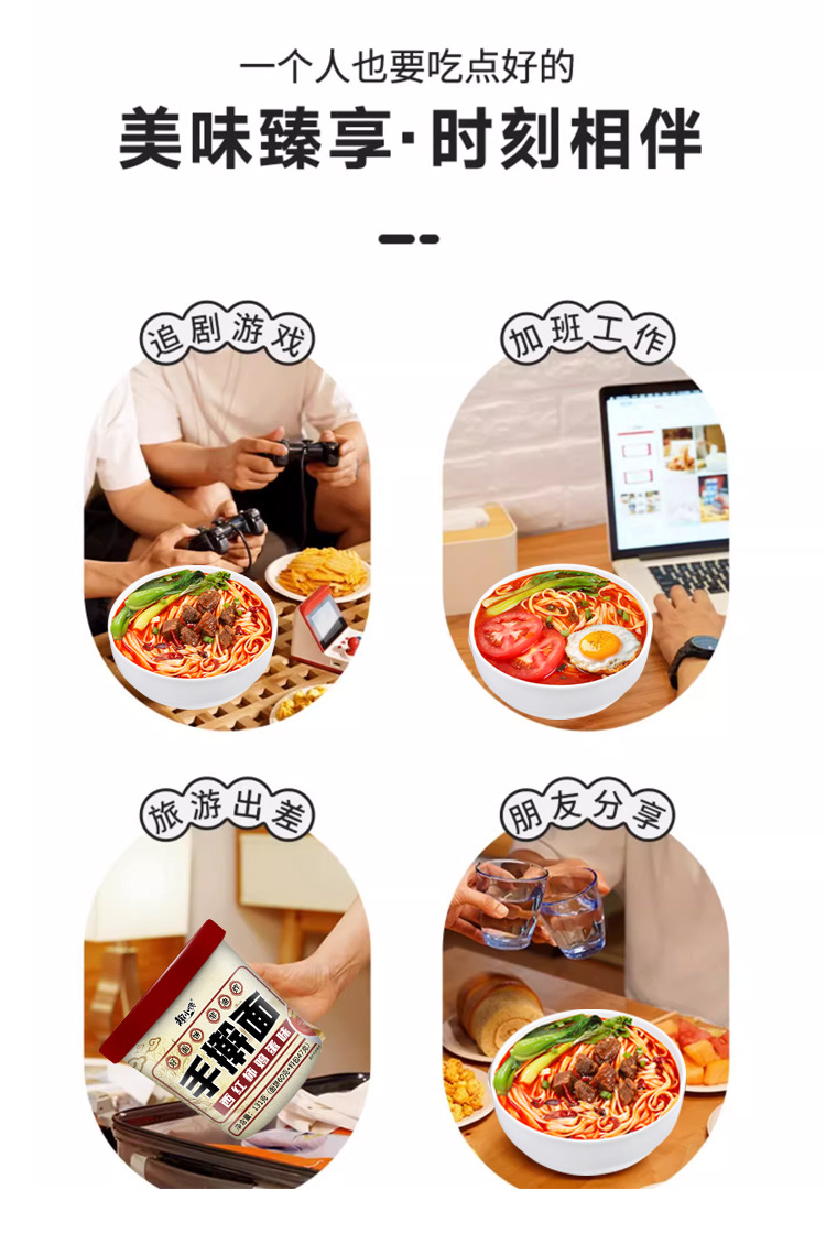 手擀面速食品 口感劲道面香浓郁 健康非油炸 桶装泡面方便面整箱 多规格