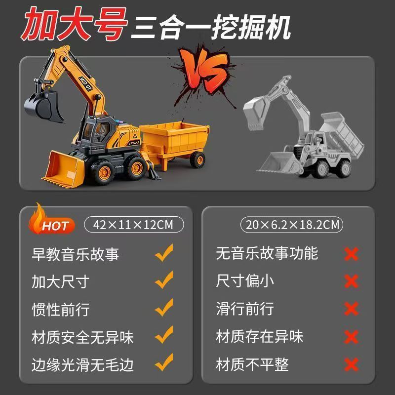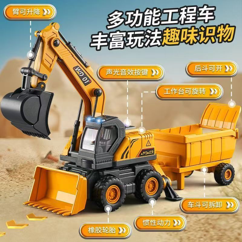 【曼龙严选】大号早教声光挖掘机车送男孩礼物 儿童翻斗车货车运输惯性工程车