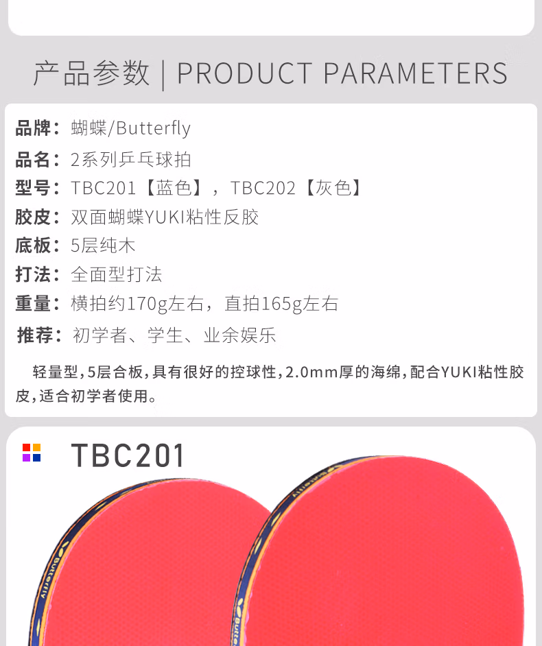蝴蝶2系列成品乒乓拍TBC-201