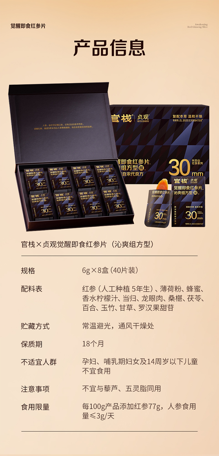 【限时特惠】官栈x贞观觉醒即食红参片沁爽组方型30mm-礼盒6g×8 商品图2