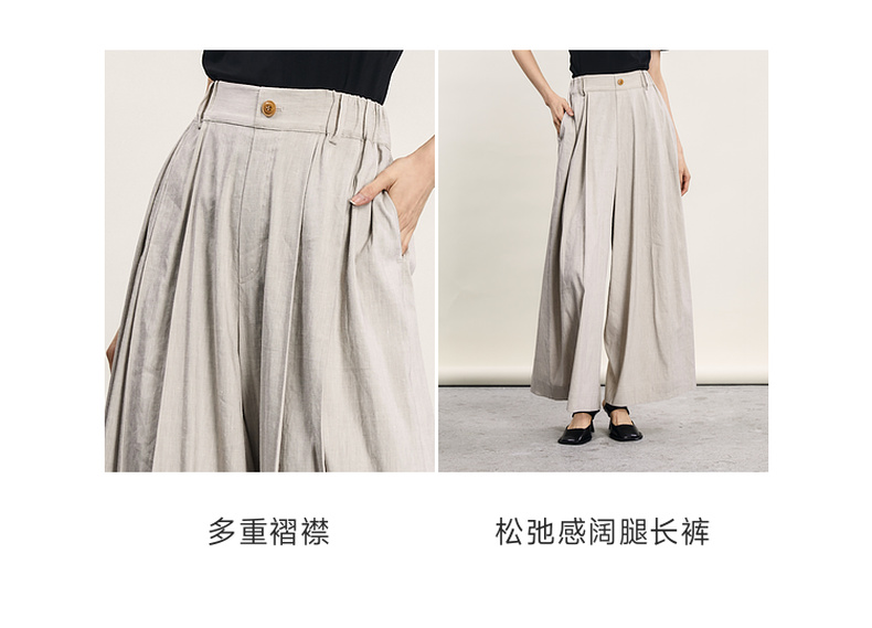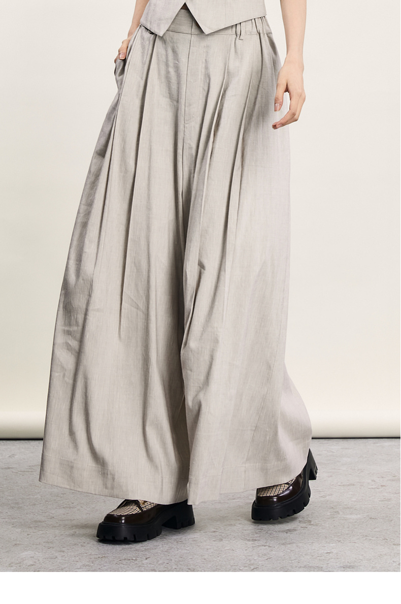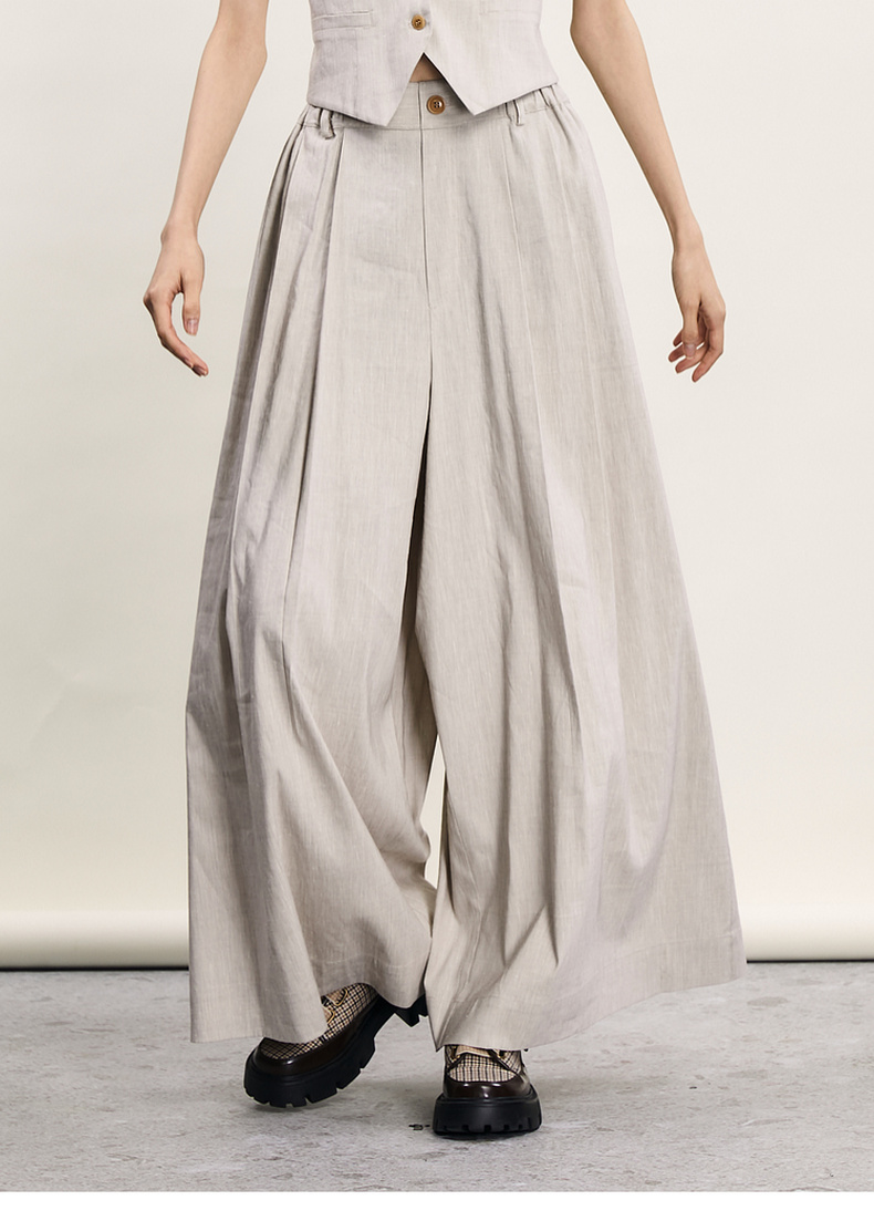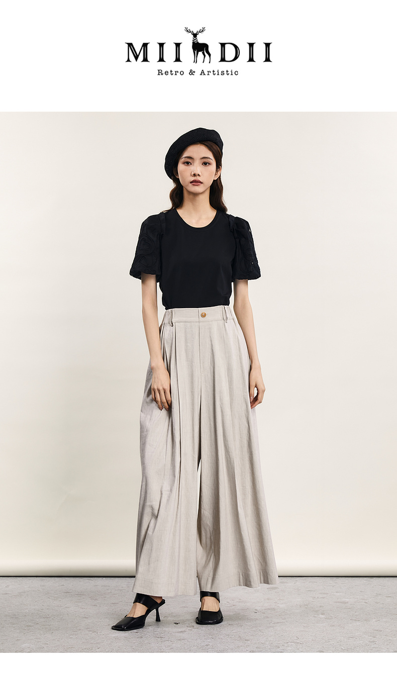 谜底宽松阔腿裤女2024年夏季新品通勤风造型感高腰长裤242MK0551