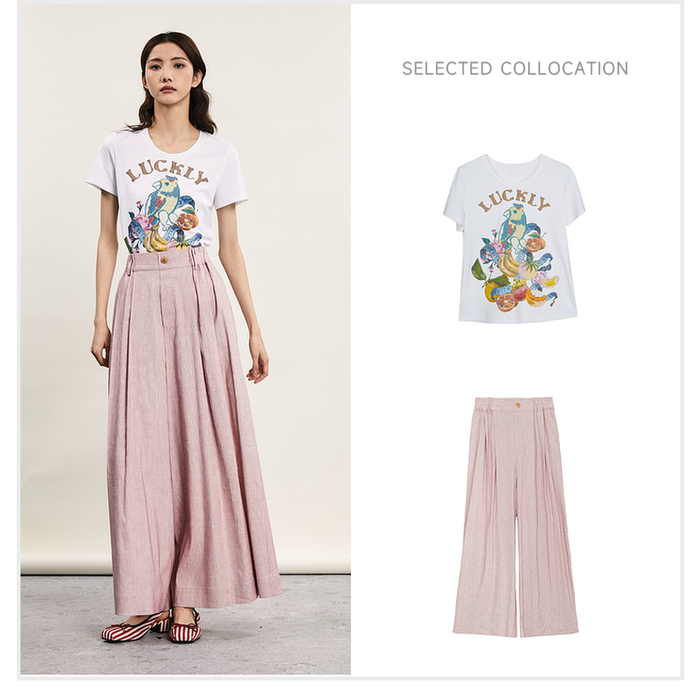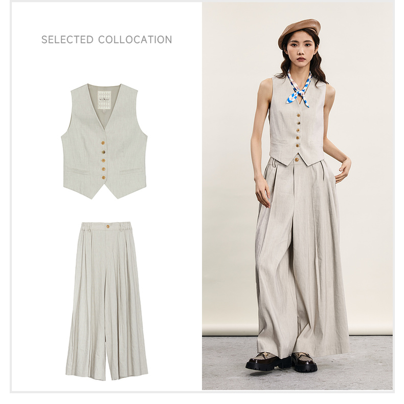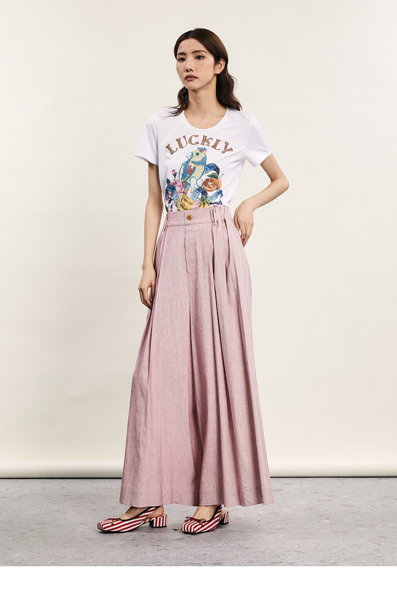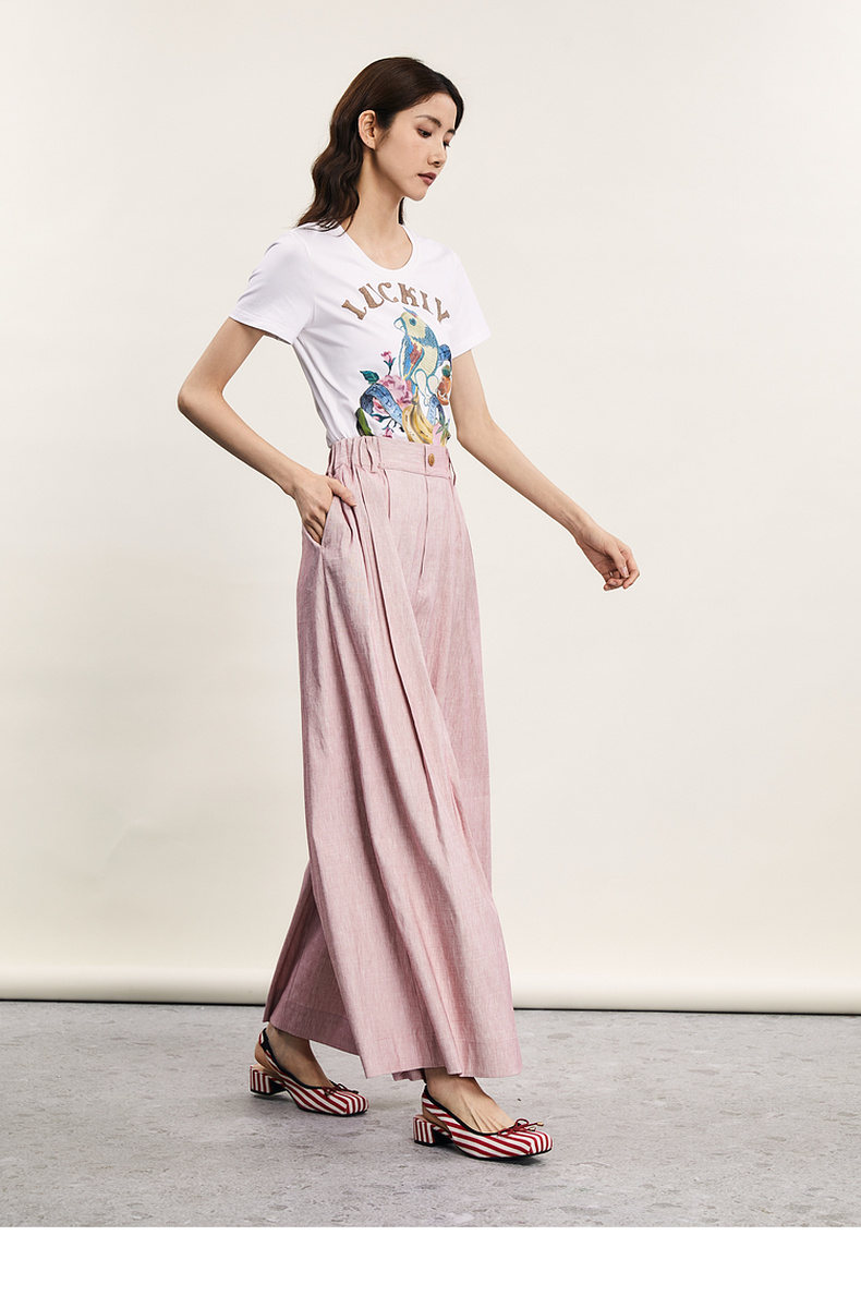 谜底宽松阔腿裤女2024年夏季新品通勤风造型感高腰长裤242MK0551