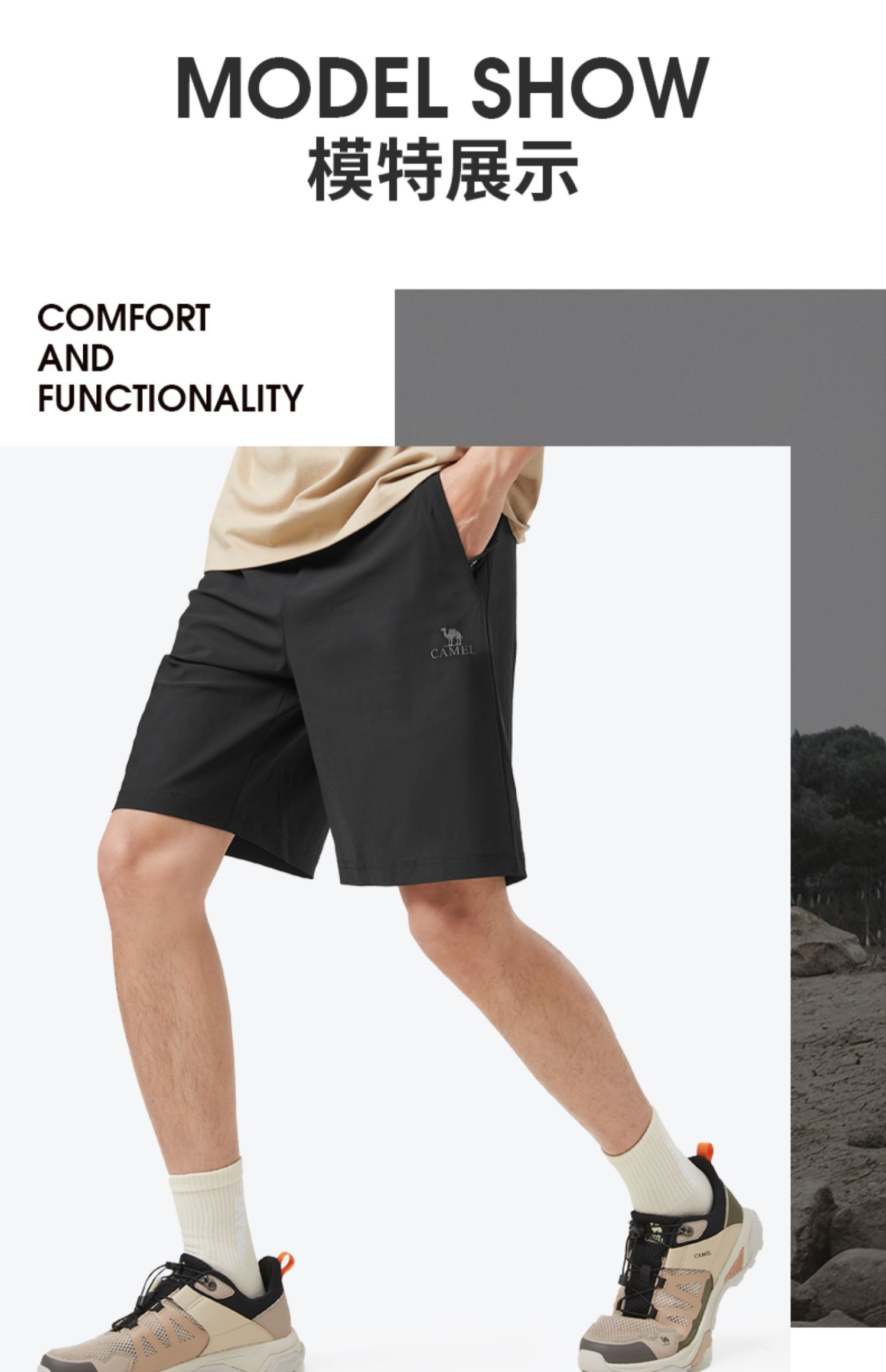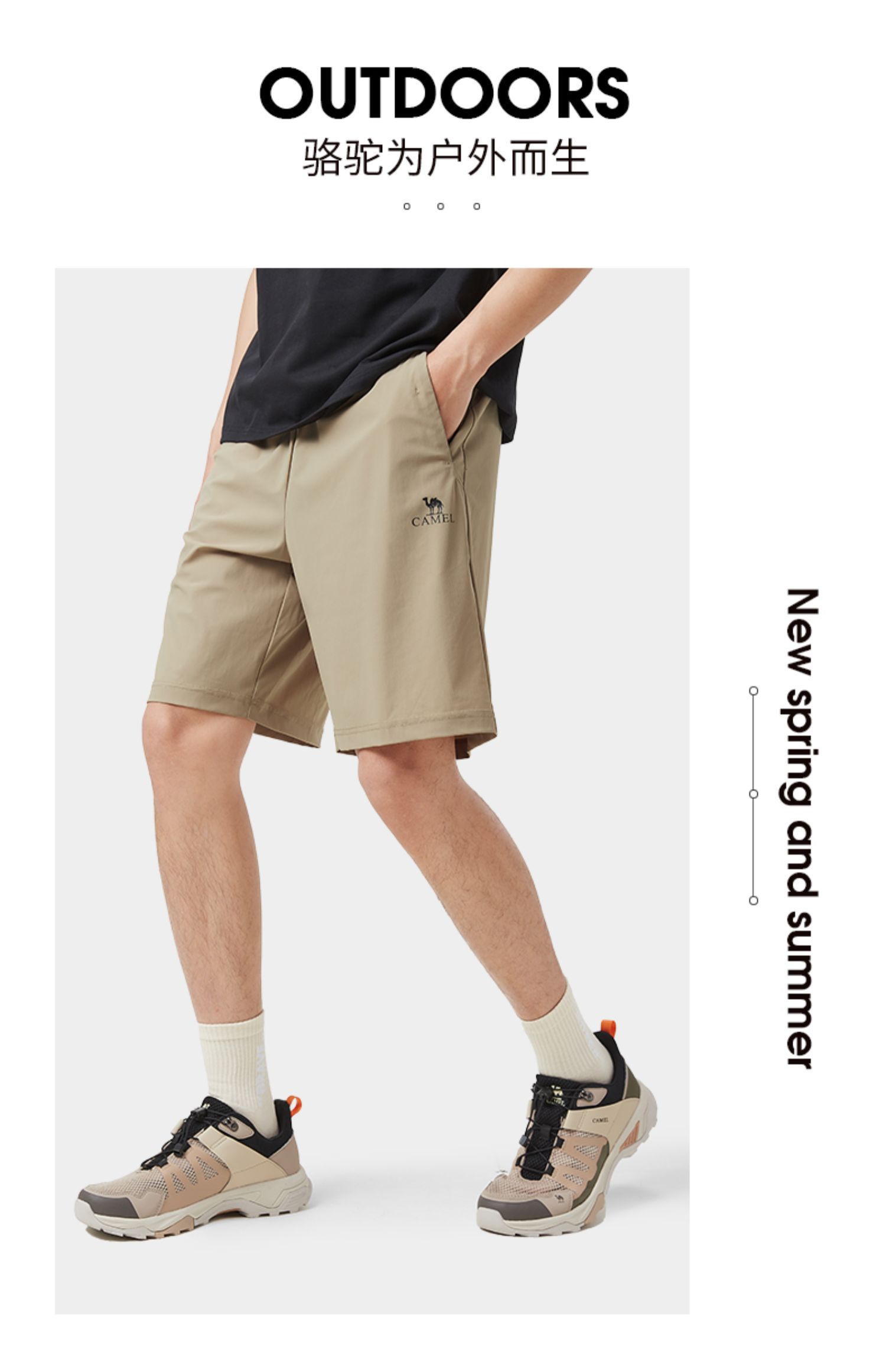 骆驼户外速干裤男五分裤 2023夏季新款宽松透气休闲裤运动短裤 A662251002_A13BAVV002