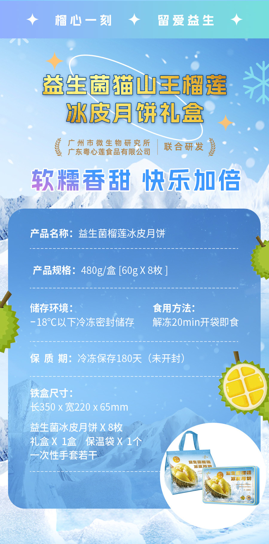 网红益生菌猫山王榴莲冰皮月饼下午茶零食休闲小吃月饼中秋节送礼中秋月饼礼盒送人送亲友礼盒
