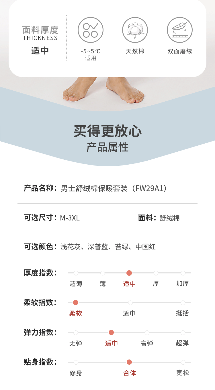 都市丽人都市锋尚舒暖保暖内衣男负5至5度适穿膨暖绒内衣舒绒单面拉烫剪保暖衣新年本命年红品FW29A1