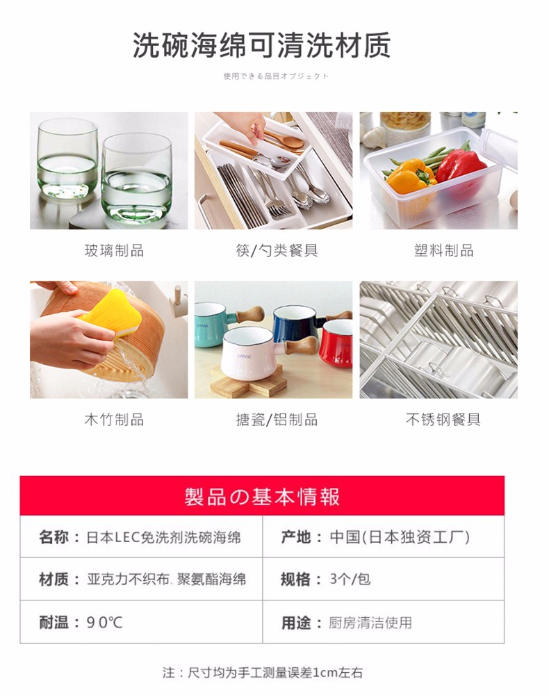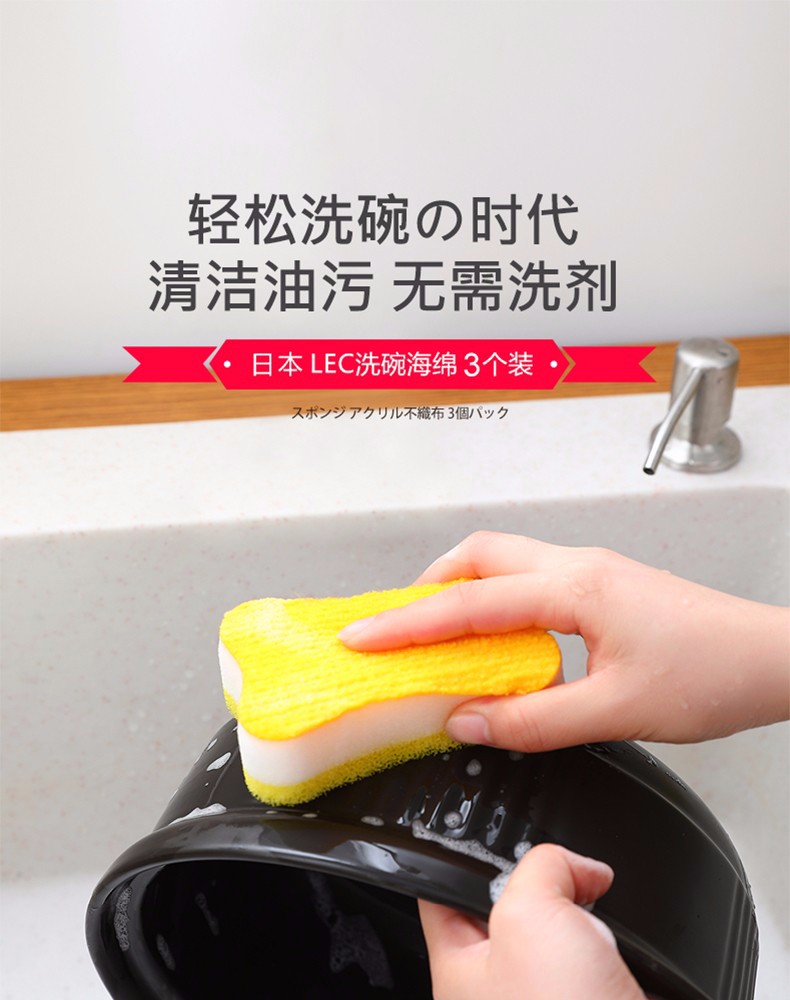LEC激落君亚克力无纺布清洁海棉3个装