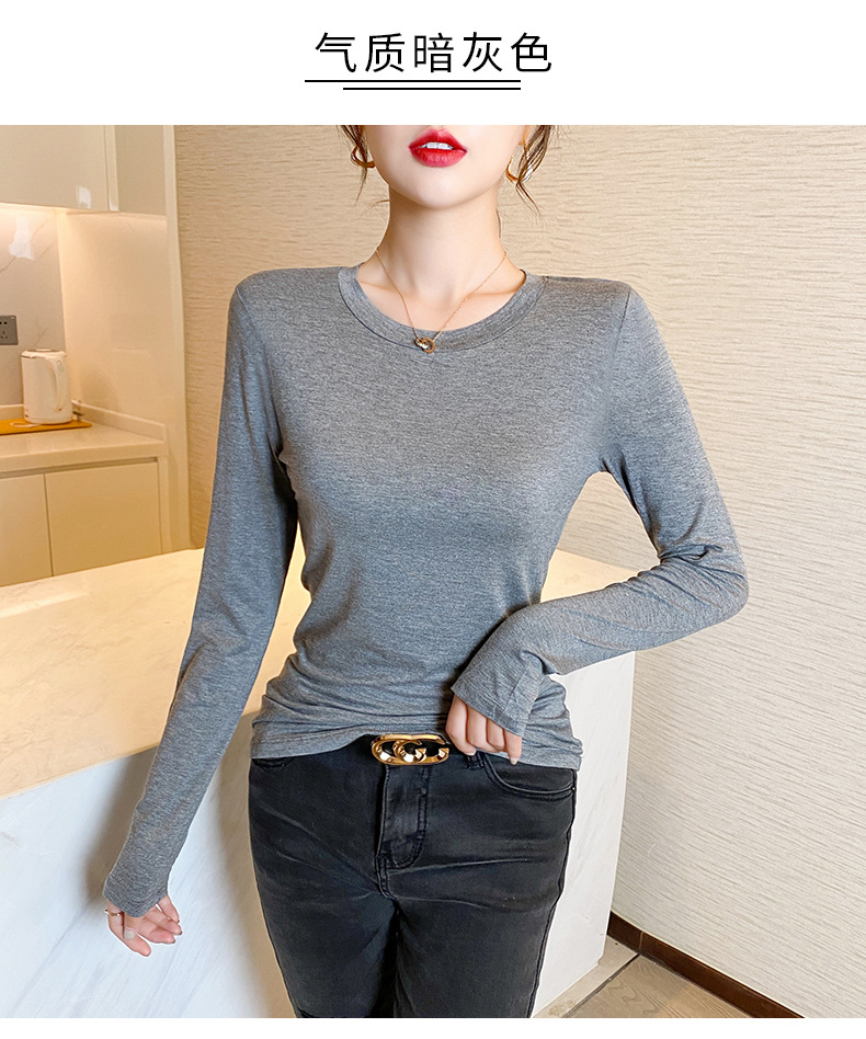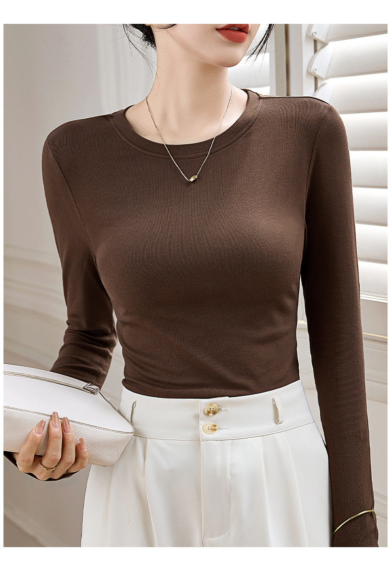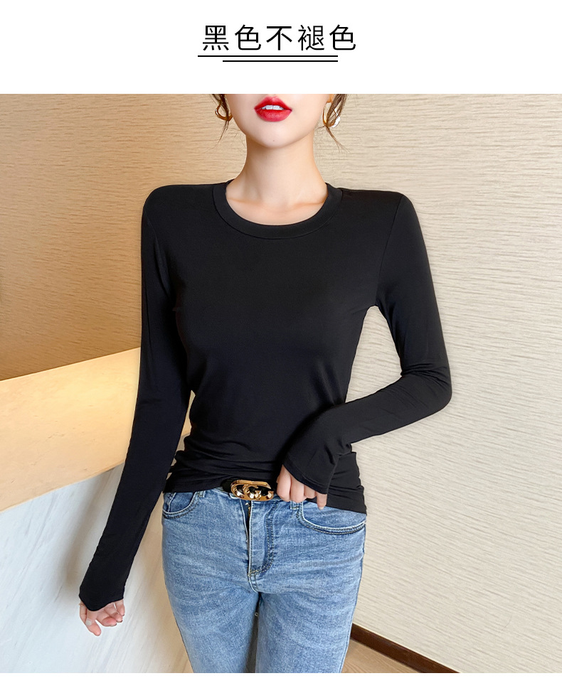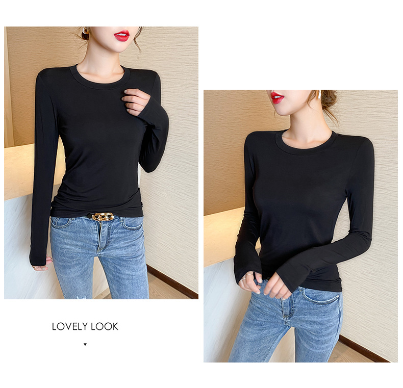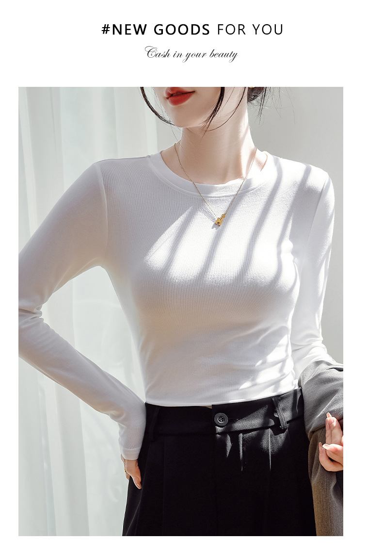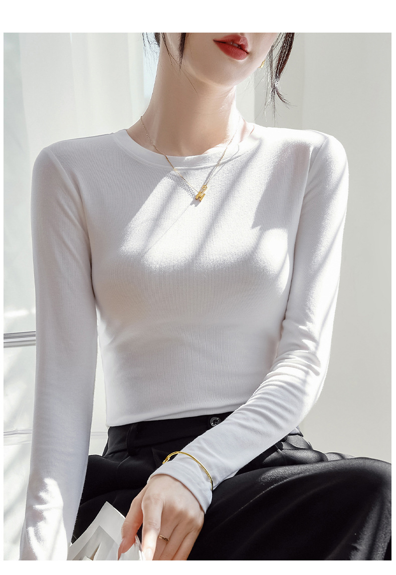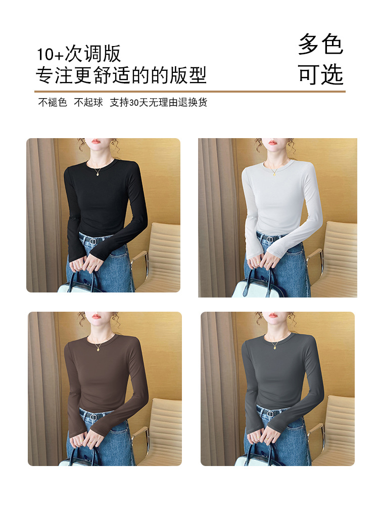 【买一送一】圆领黑色打底衫女螺纹春秋冬季西装内搭修身洋气长袖T恤针织上衣