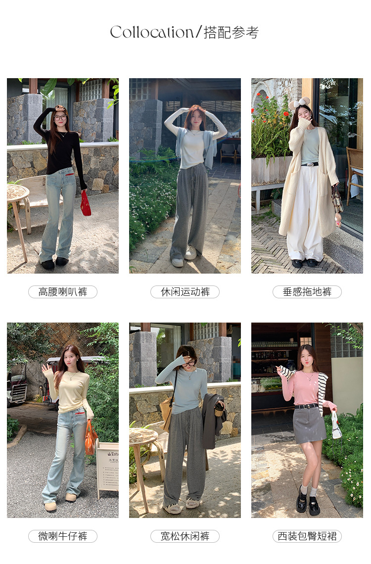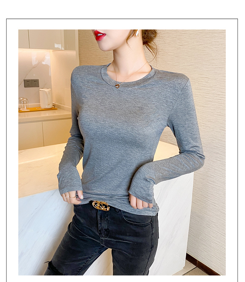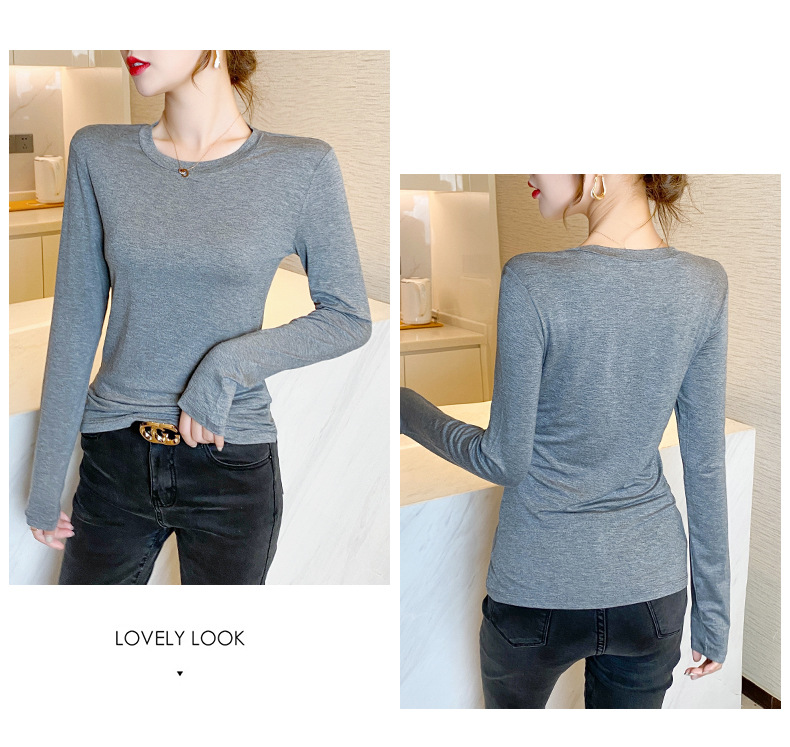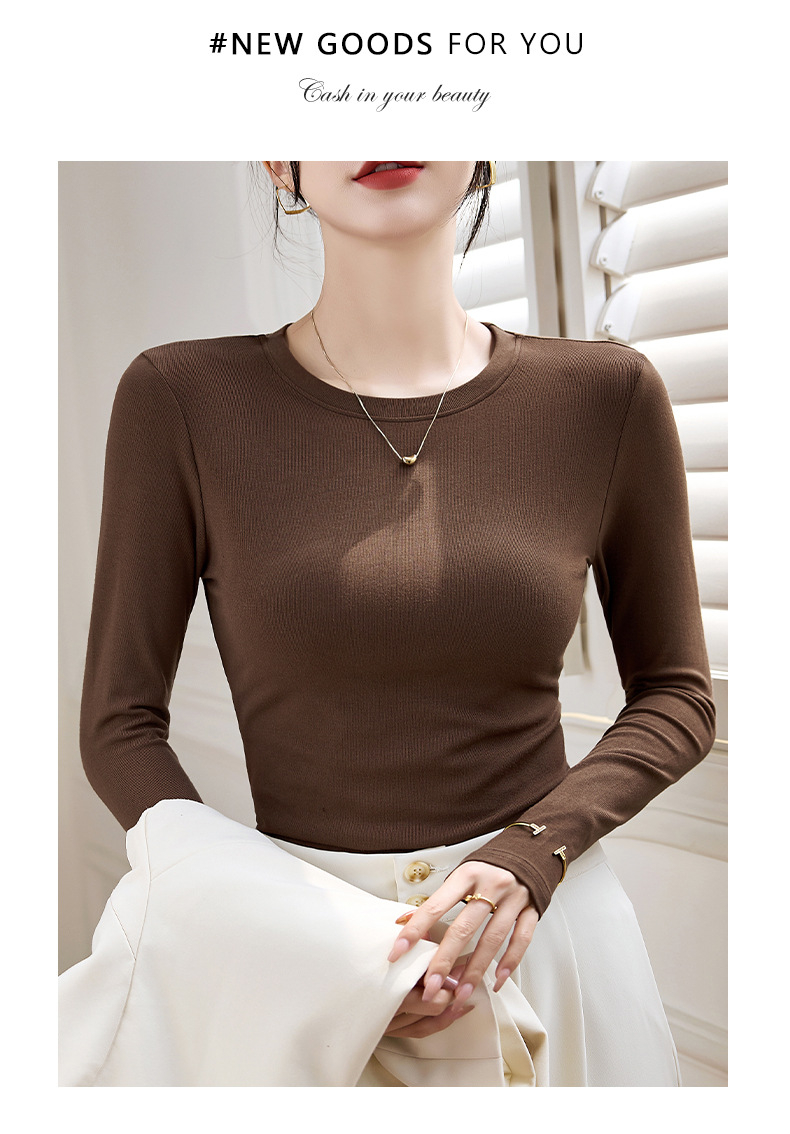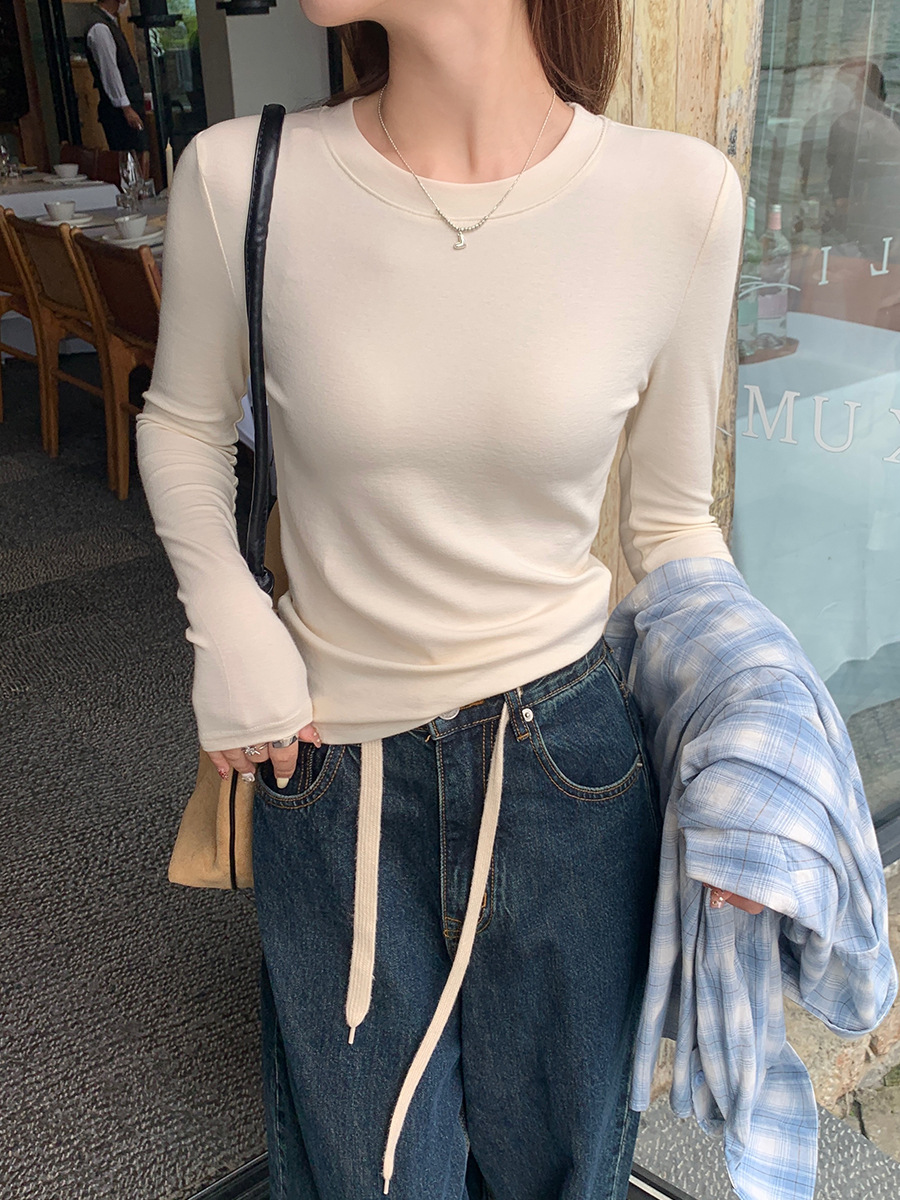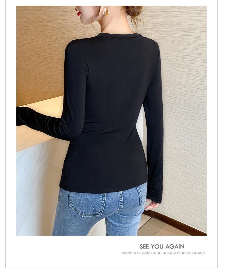 【买一送一】圆领黑色打底衫女螺纹春秋冬季西装内搭修身洋气长袖T恤针织上衣