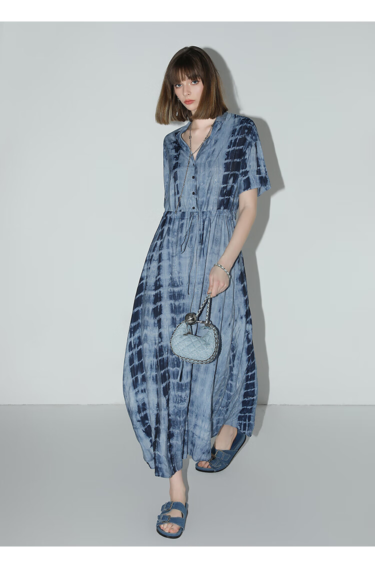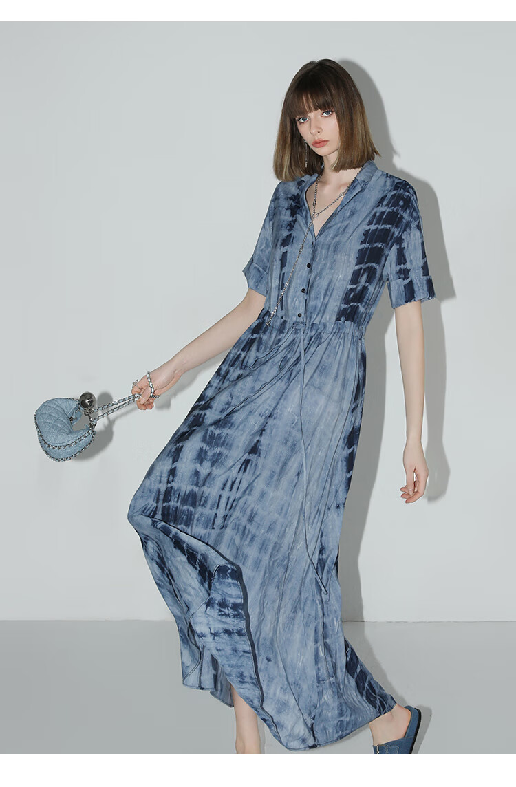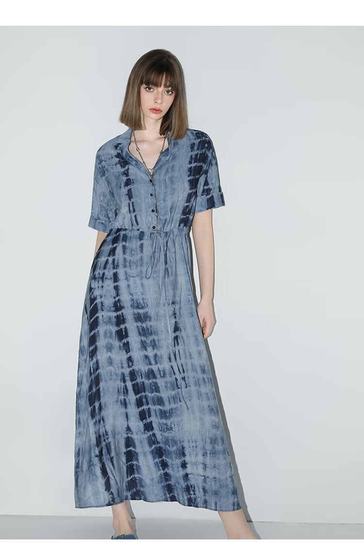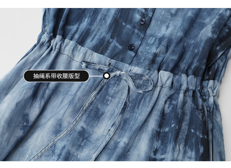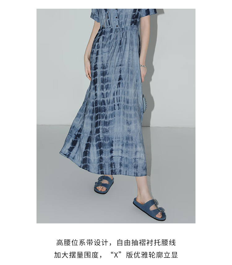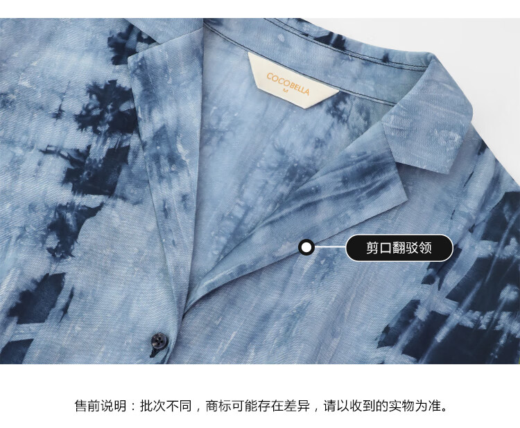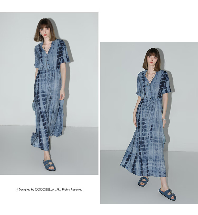 【限时秒杀】COCOBELLA手工扎染印花衬衫裙女夏气质通勤OL束腰连衣裙FR525B