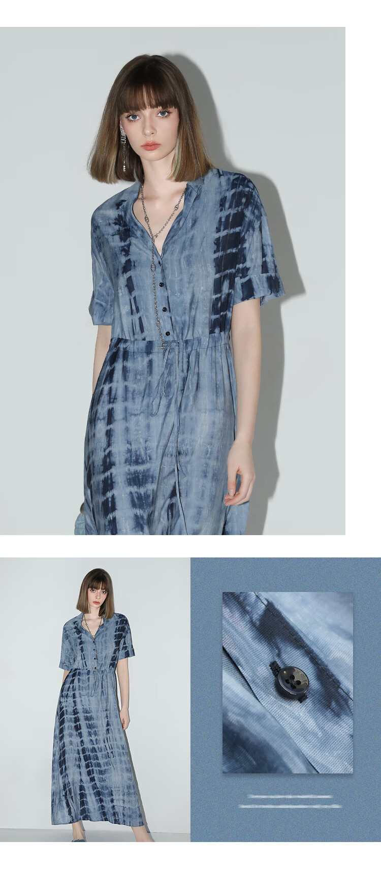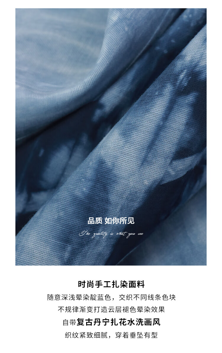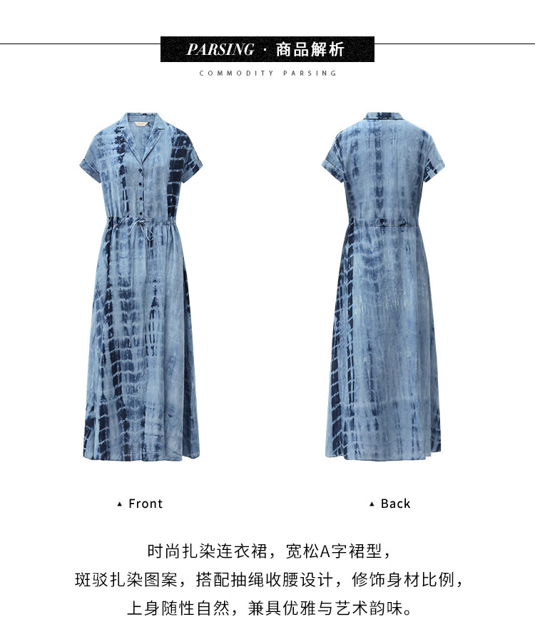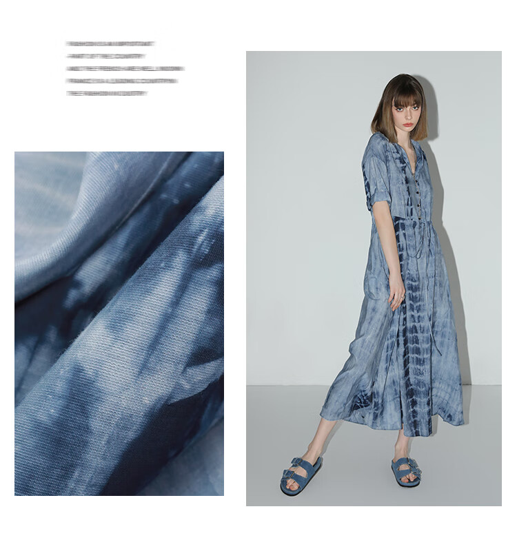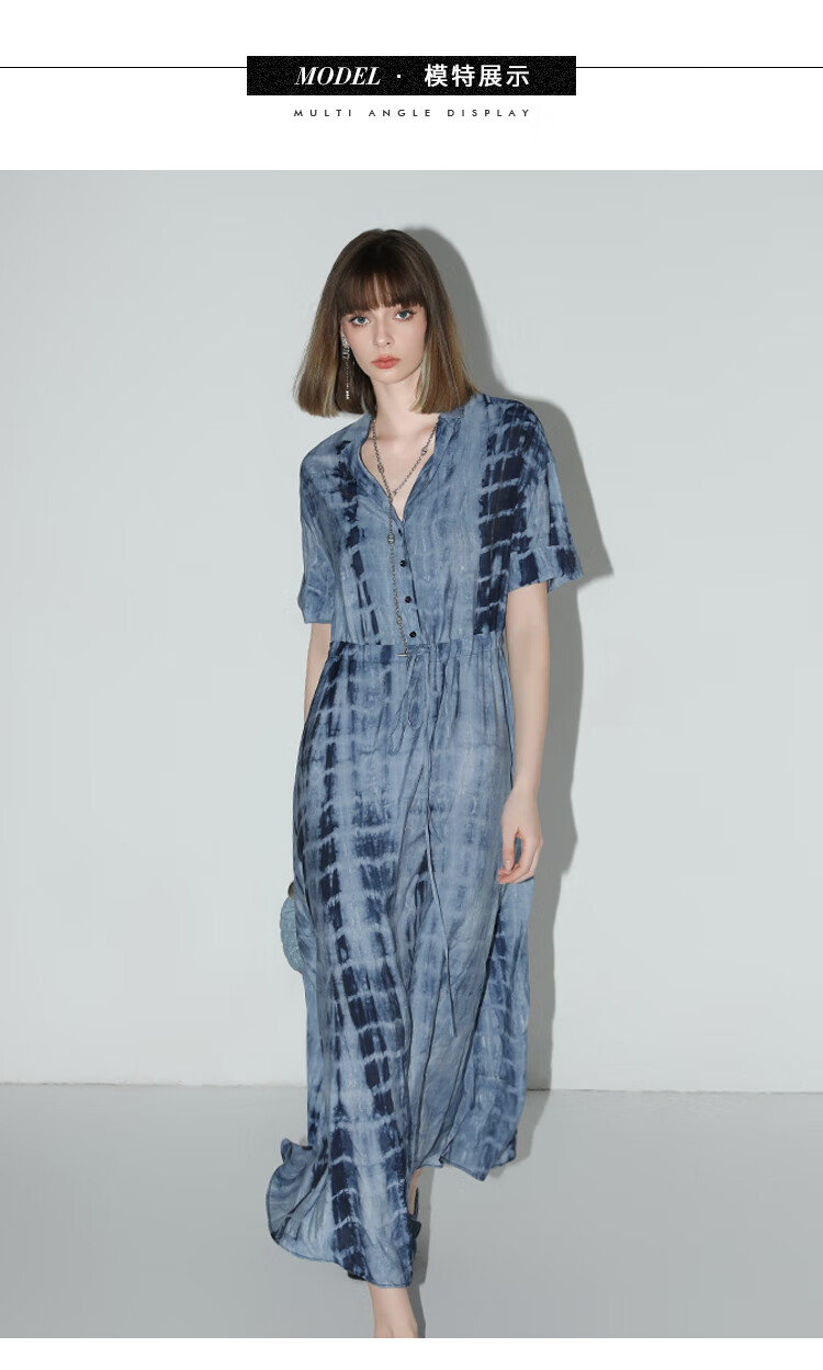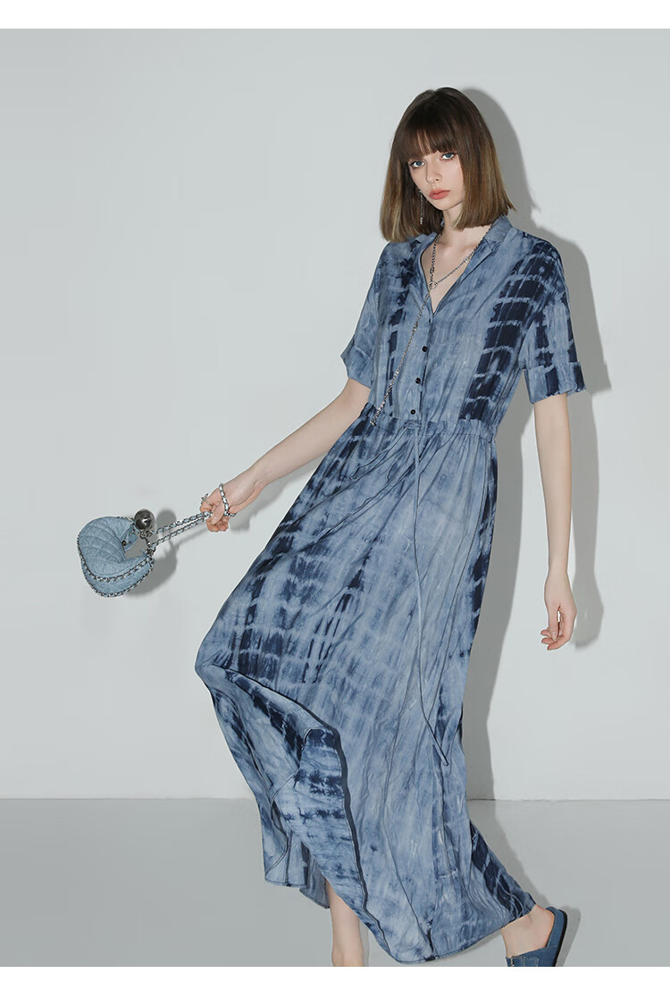 【限时秒杀】COCOBELLA手工扎染印花衬衫裙女夏气质通勤OL束腰连衣裙FR525B