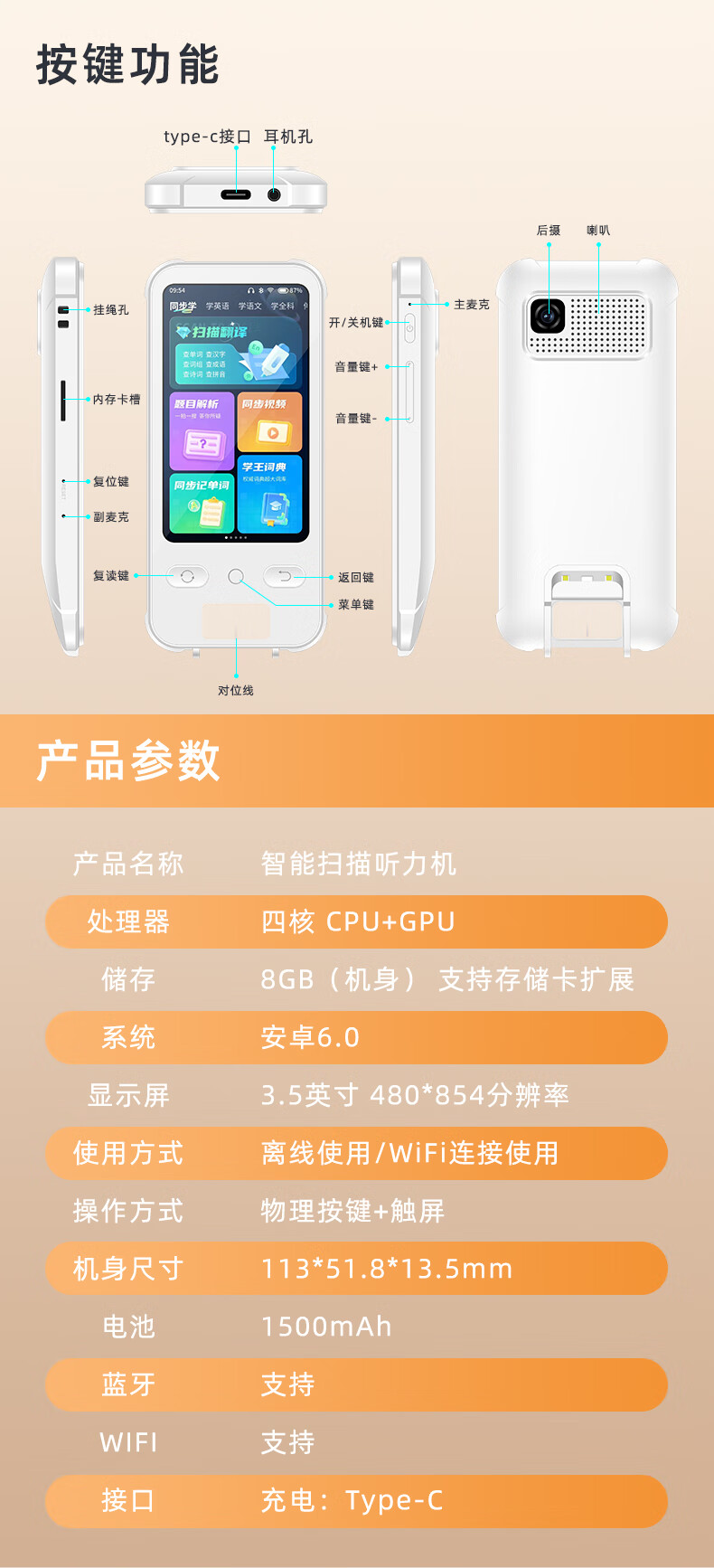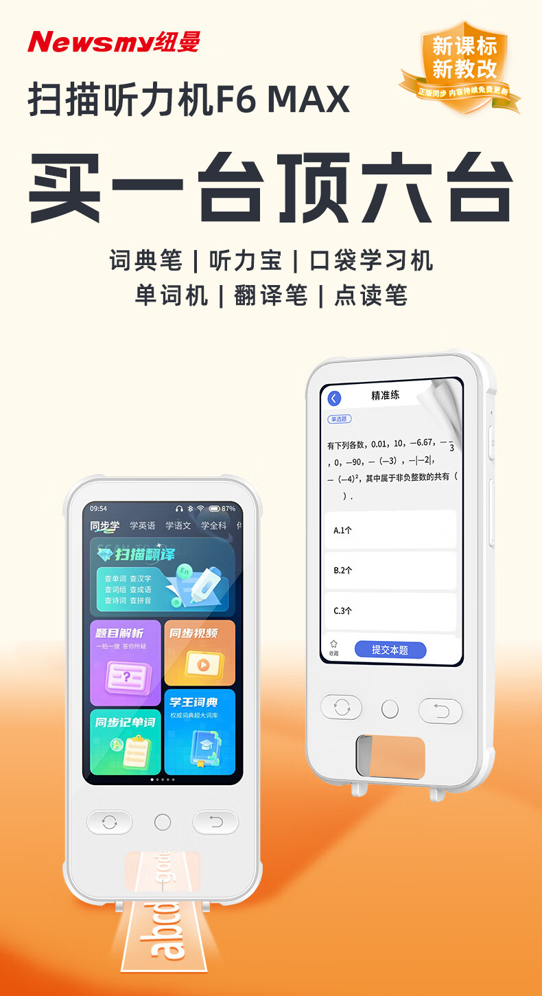【自营】 纽曼 词典笔 扫描翻译 宽屏触摸 权威教材 课本点读听读 F6 MAX 64g/128g