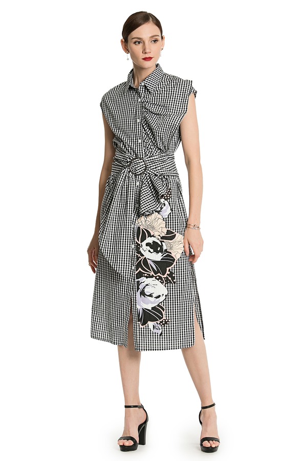 OCTAVIA 黑白细格纹印花连衣裙 2746