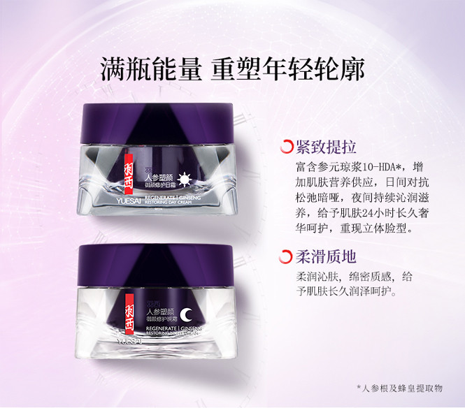 商品名称: 【清仓好价】羽西人参御颜修护日霜50ml+晚霜50ml