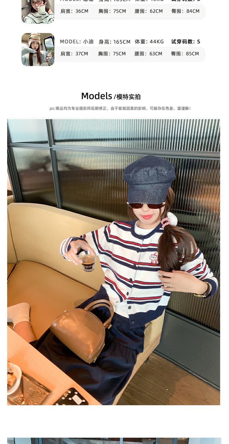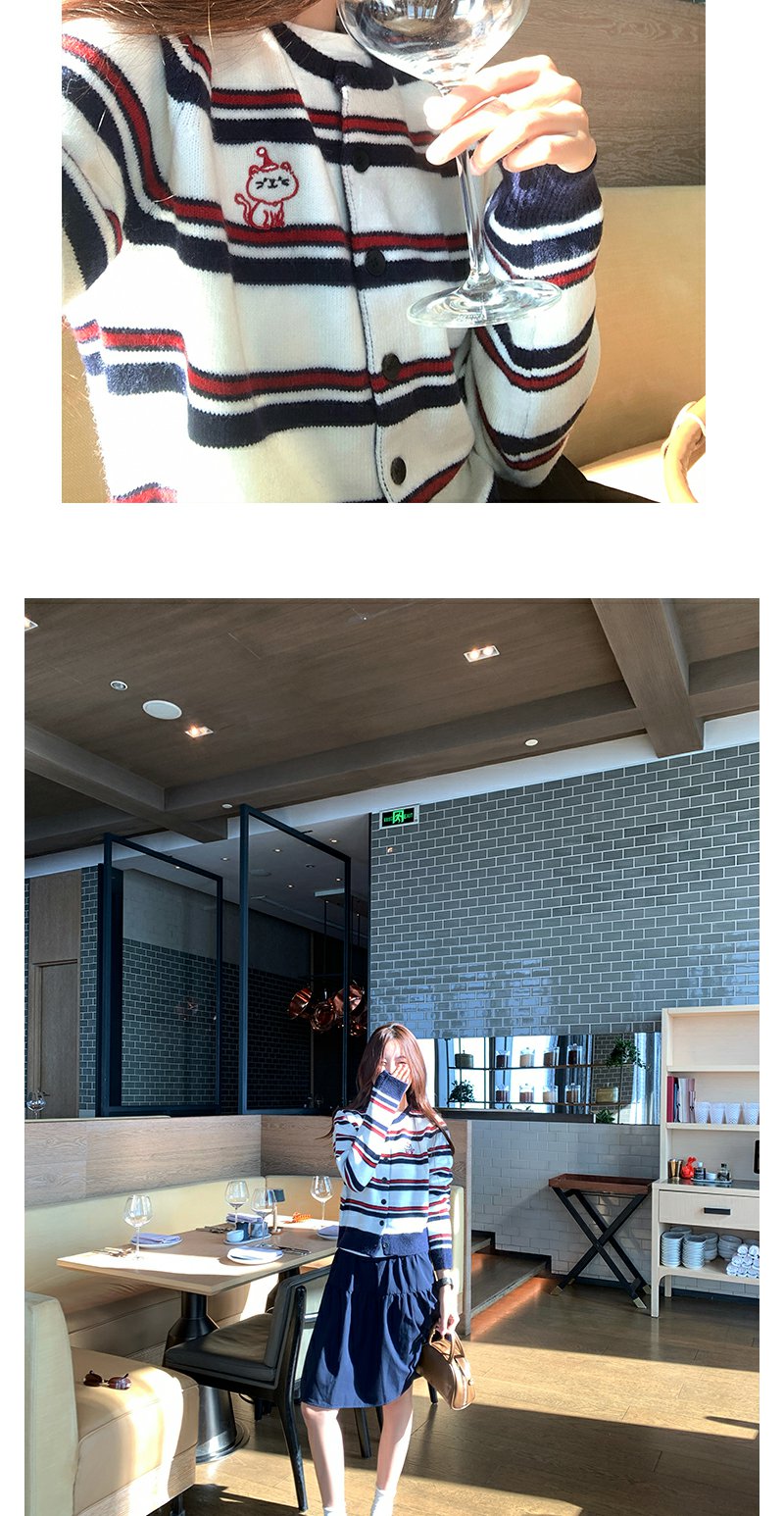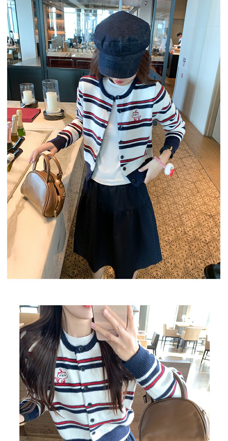 <曾小咸推荐>条纹毛衣开衫刺绣外套【预售款,预计3-15天发货】