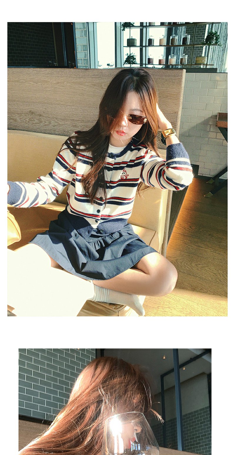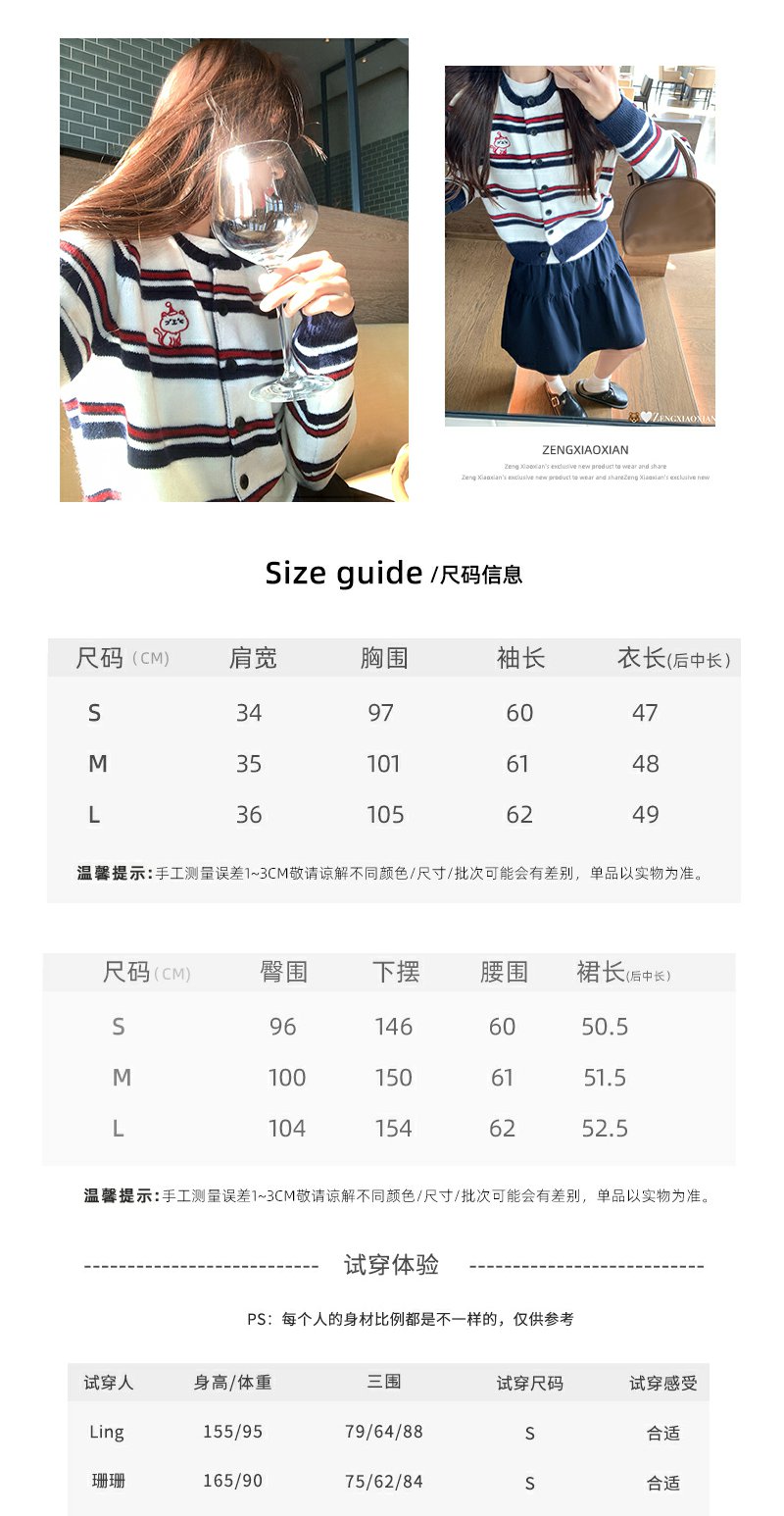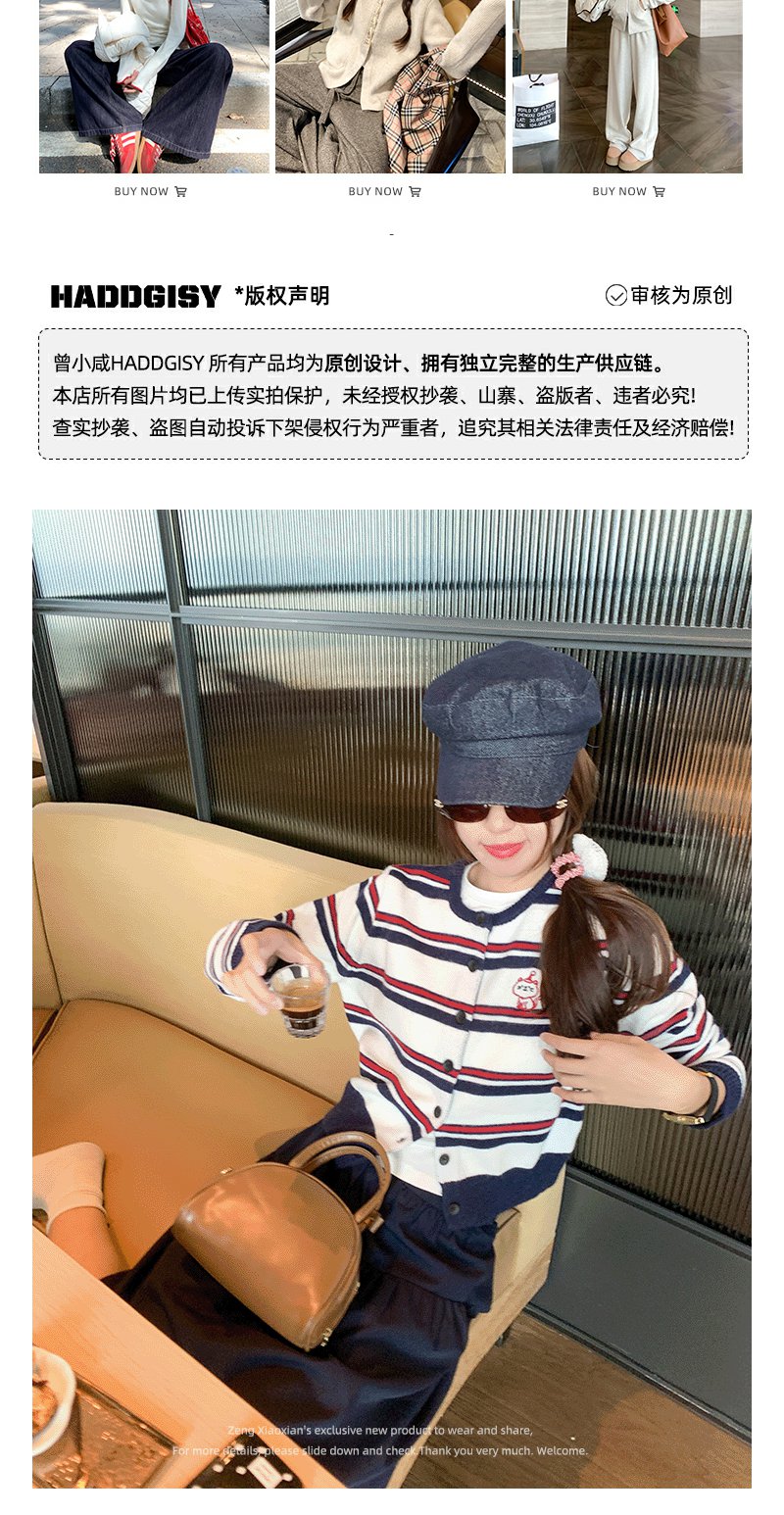 <曾小咸推荐>条纹毛衣开衫刺绣外套【预售款,预计3-15天发货】