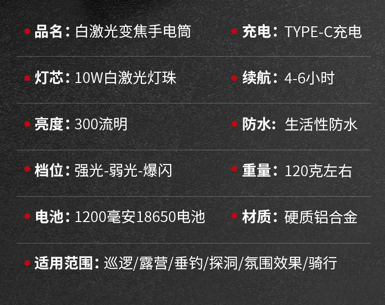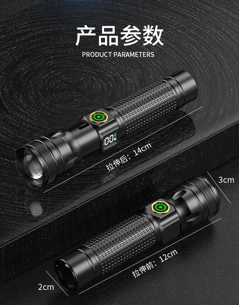 【新黑科技 超轻便携手电筒】新款白激光手电筒 充电便携数字电显全铝合金手电筒 强光长续航